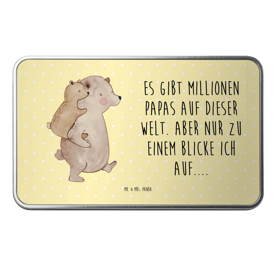 Metalldose rechteckig Papa Bär - mit Spruch - Gelb Pastell