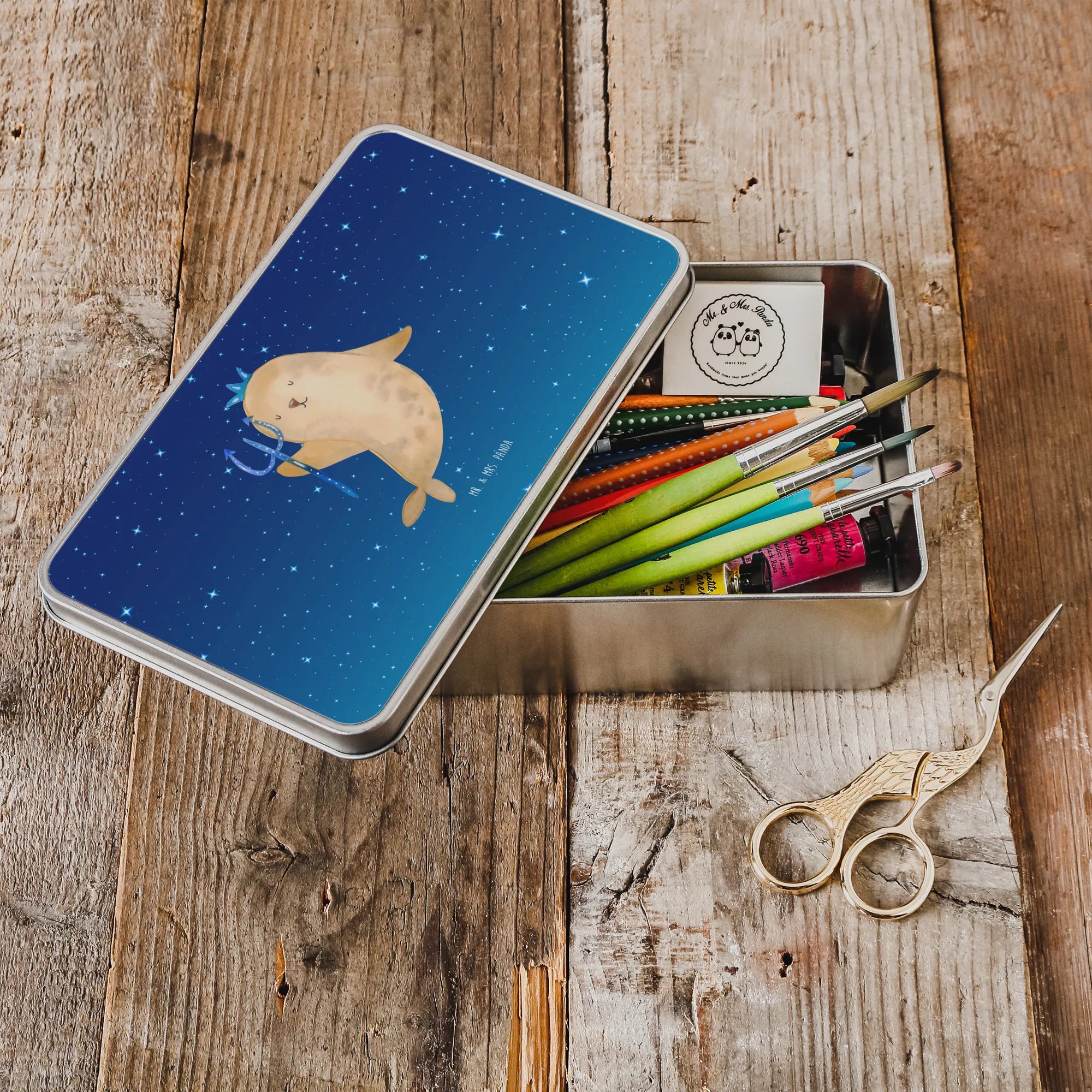 Entdecke die wunderschöne Metalldose rechteckig mit dem charmanten Motiv des Wassermanns aus der Sternzeichen-Kollektion von Mr. & Mrs. Panda! Diese Dose ist nicht nur ein praktischer Aufbewahrungsort für Kekse oder andere kleine Schätze, sondern auch ein liebevolles Geschenk für all jene, die im Januar oder Februar geboren wurden.