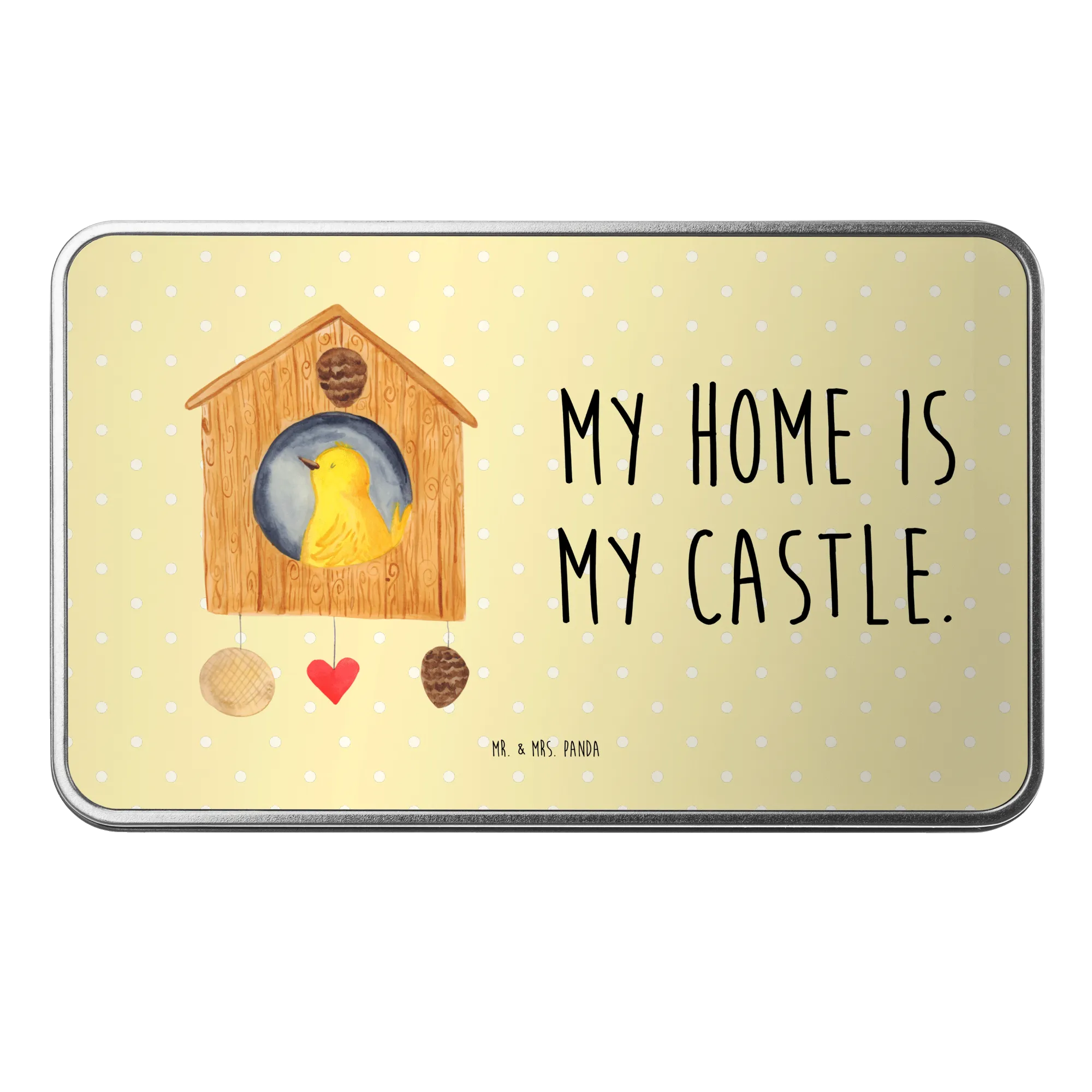 Metalldose rechteckig Vogel Haus - mit Spruch