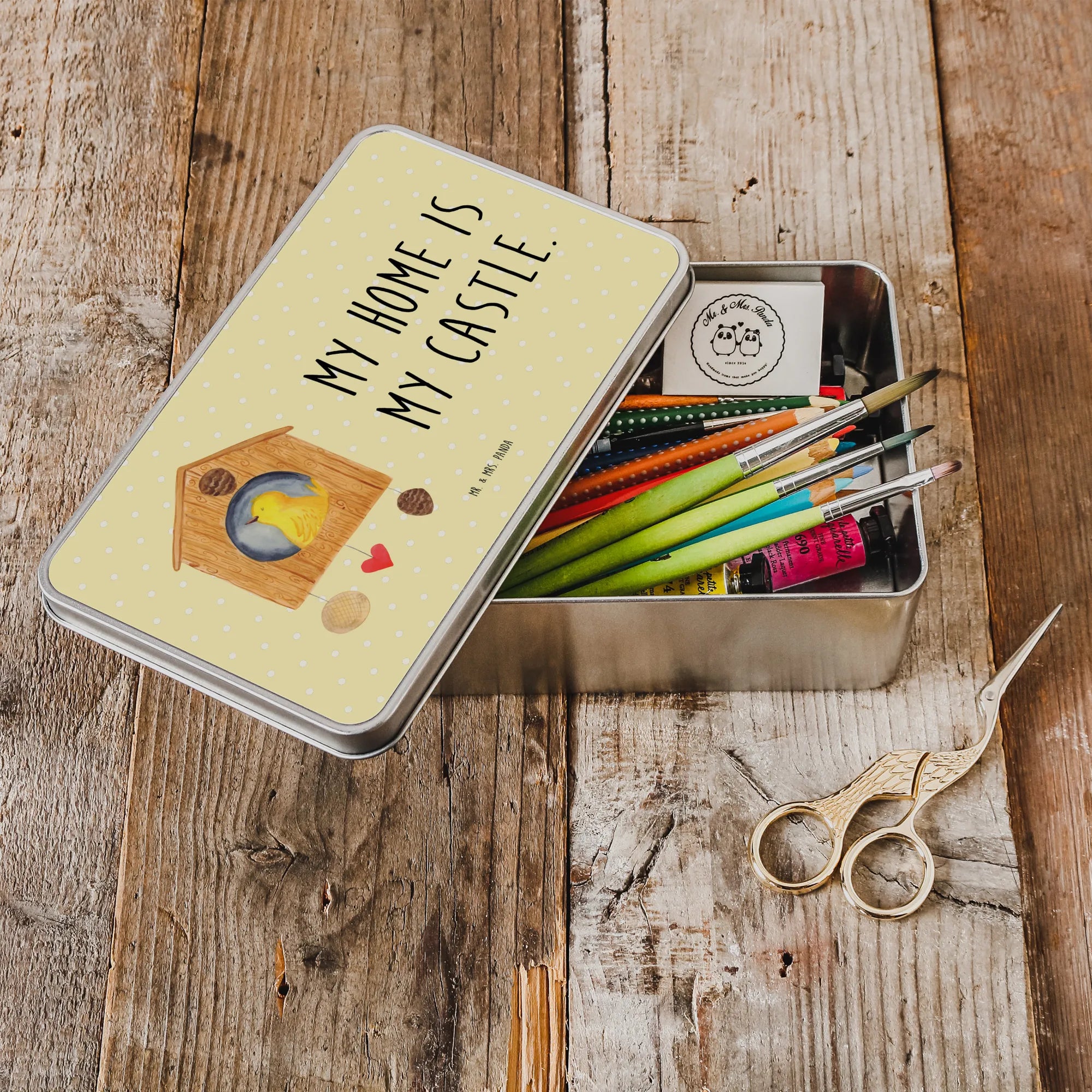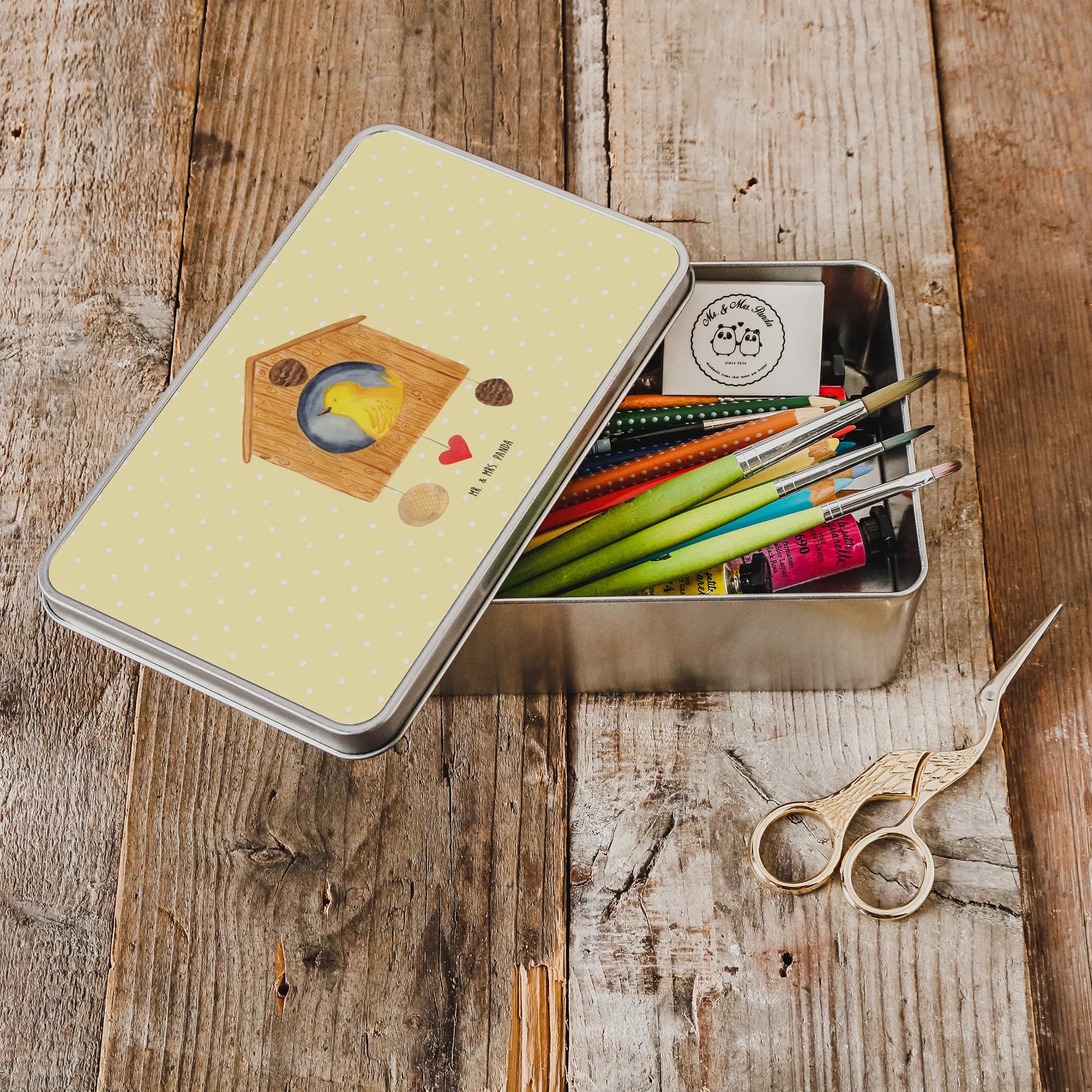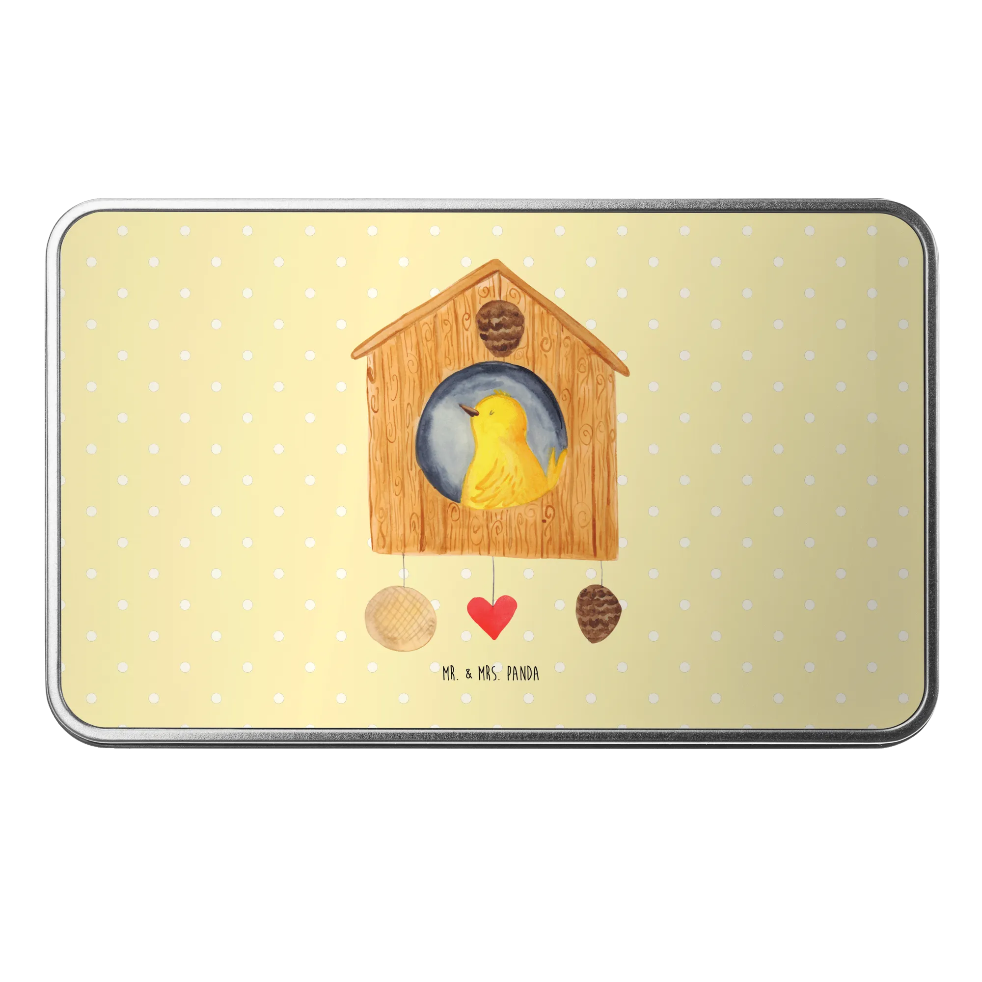 Die wunderschöne rechteckige Metalldose von Mr. & Mrs. Panda mit dem bezaubernden Motiv des Vogelhauses ist das perfekte Geschenk für jeden, der sein Zuhause mit viel Liebe und Stil gestalten möchte. In sanften Gelbtönen gehalten, passt diese Dose ideal in jede Küche oder Wohnbereich und bringt gute Laune und einen Hauch von Natur ins Zuhause. Die Metalldose hat die Maße von 187 mm x 125 mm x 36 mm und ist aus hochwertigem Metall gefertigt, was sie besonders stabil und langlebig macht.
