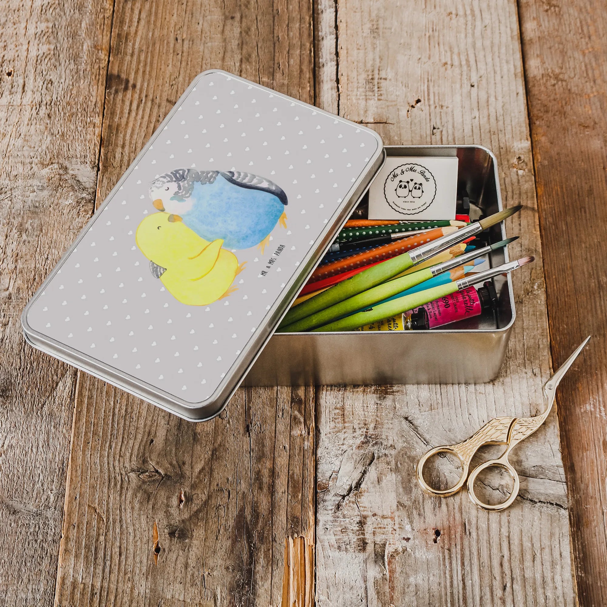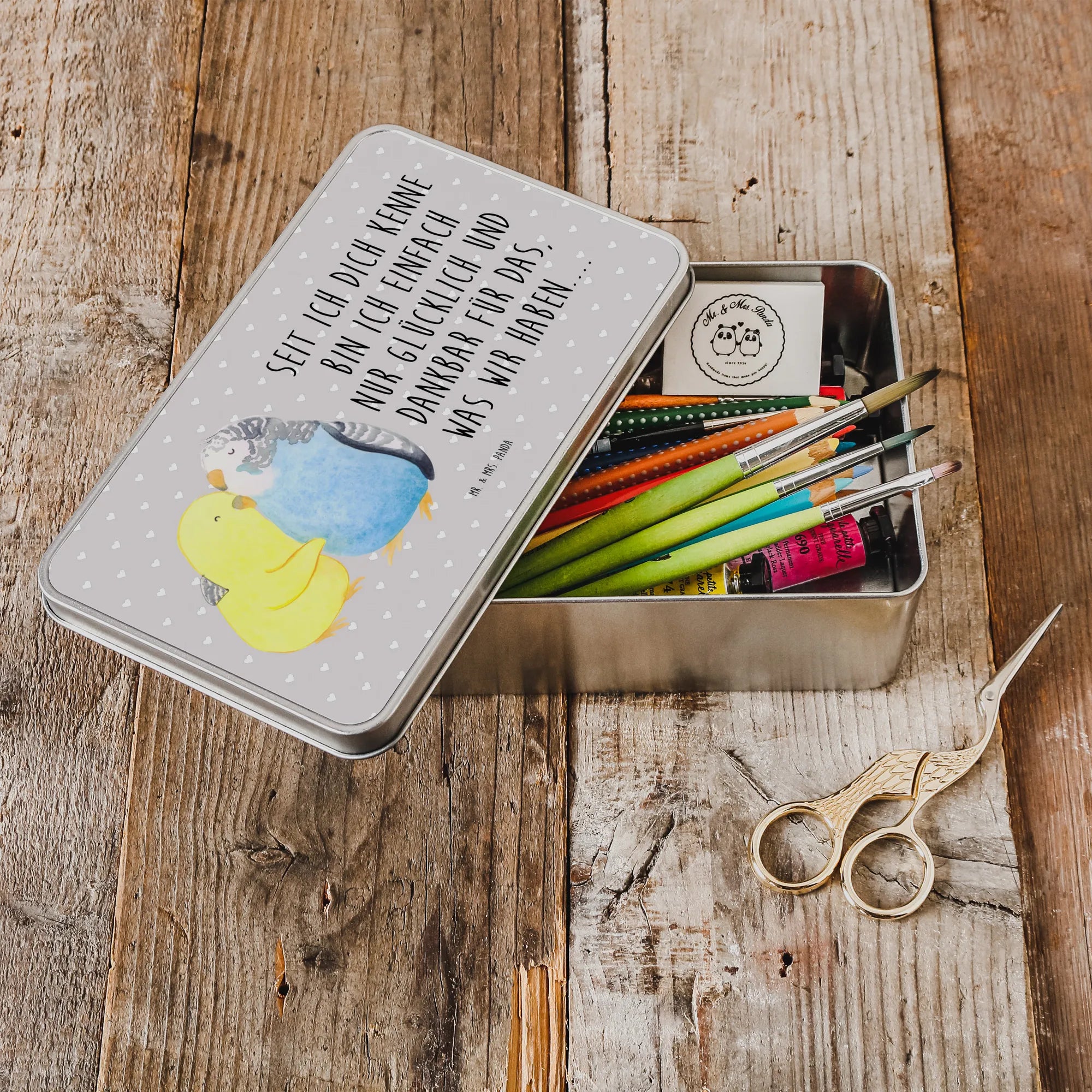 Metalldose rechteckig Wellensittich Liebe – Mr. & Mrs. Panda