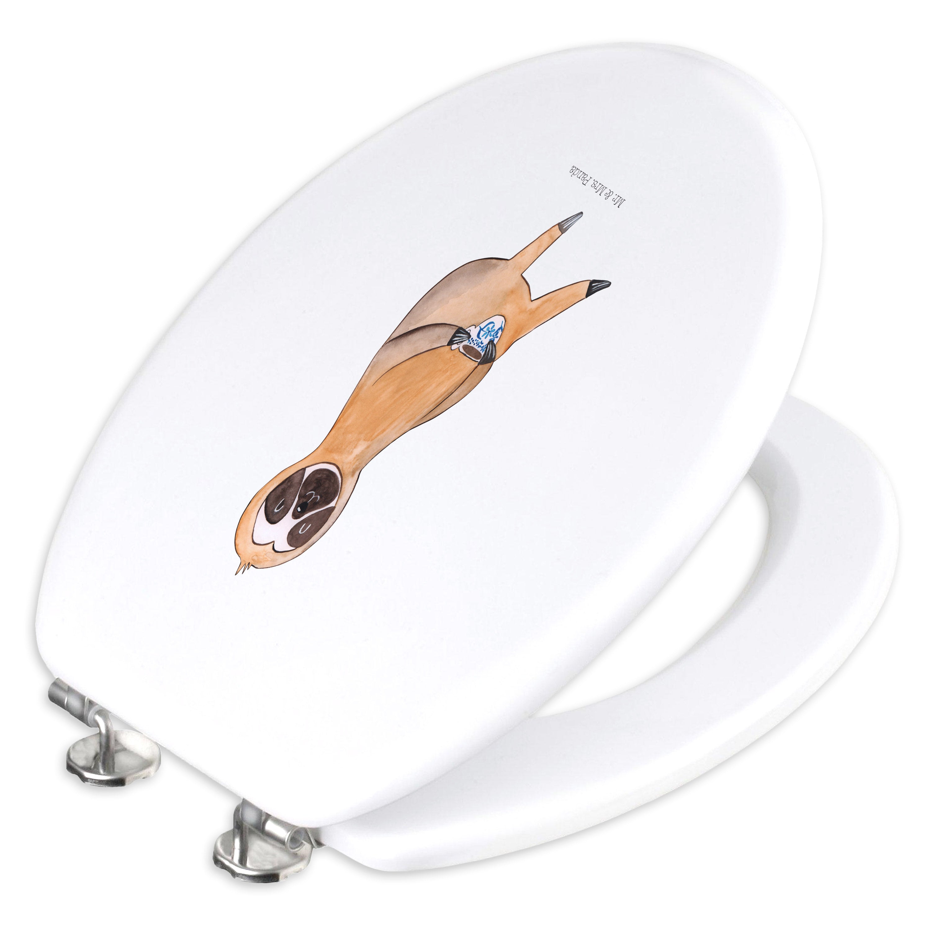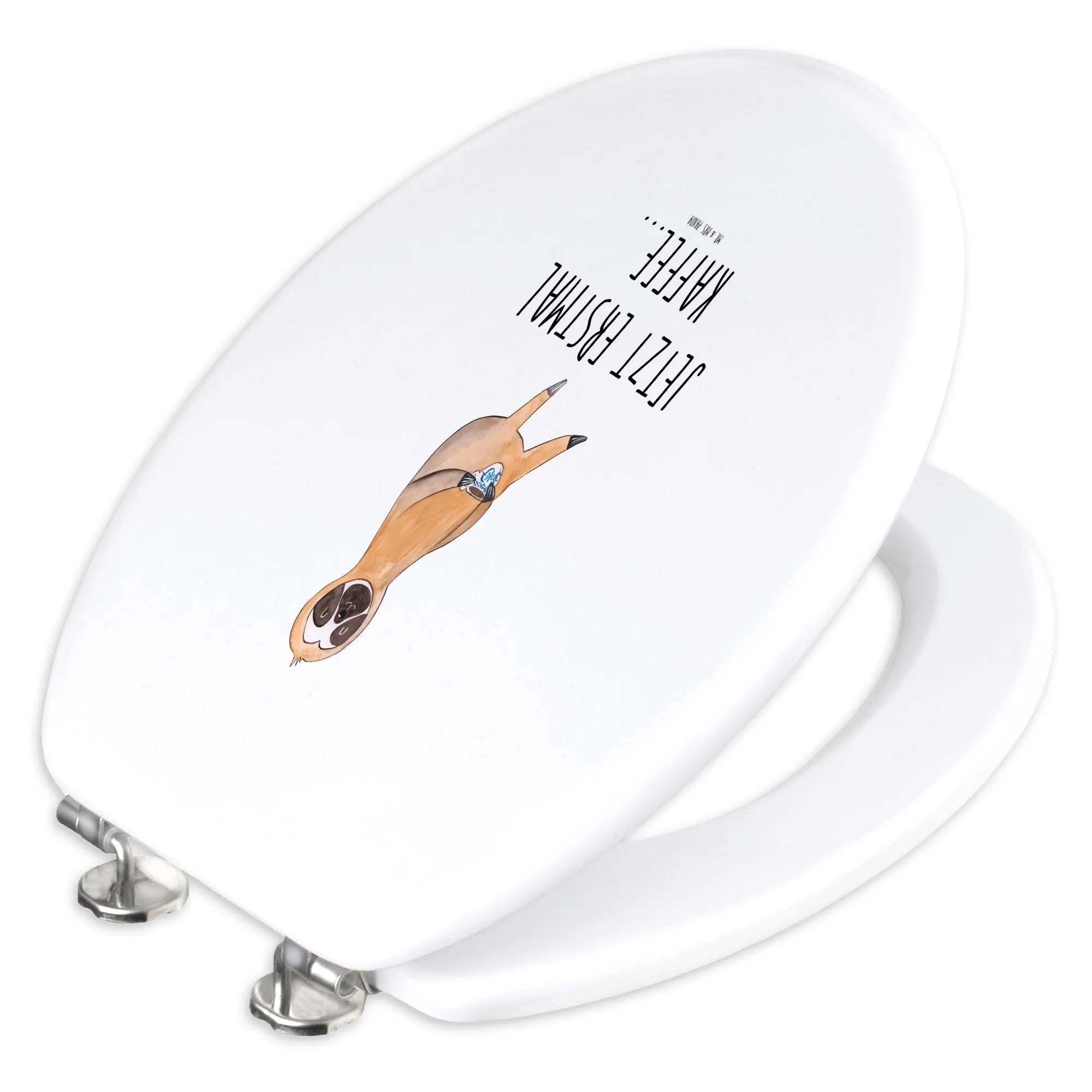 Lass deine Toilette mit dem exquisiten WC Sitz von Mr. & Mrs. Panda erstrahlen! Unser Sitz, gefertigt aus feinstem Bambus Holz oder langlebigem MDF Holz, kombiniert Funktionalität mit Design. Mit den Abmessungen von 430 mm x 370 mm x 50 mm passt dieser Sitz bestens auf alle gängigen Toilettenmodelle. Das besondere Highlight: Die fröhlichen Motive und Sprüche verwandeln jeden Toilettengang in ein kleines Highlight des Tages. Der Sitz bietet einen hohen Komfort und bleibt selbst an kühlen Tagen angenehm warm. Er kommt ohne Absenkautomatik, schließt jedoch leise und ist leicht zu installieren. Das Befestigungsmaterial ist im Lieferumfang enthalten. Veredele dein Badezimmer mit diesem stilvollen WC Sitz von Mr. & Mrs. Panda.