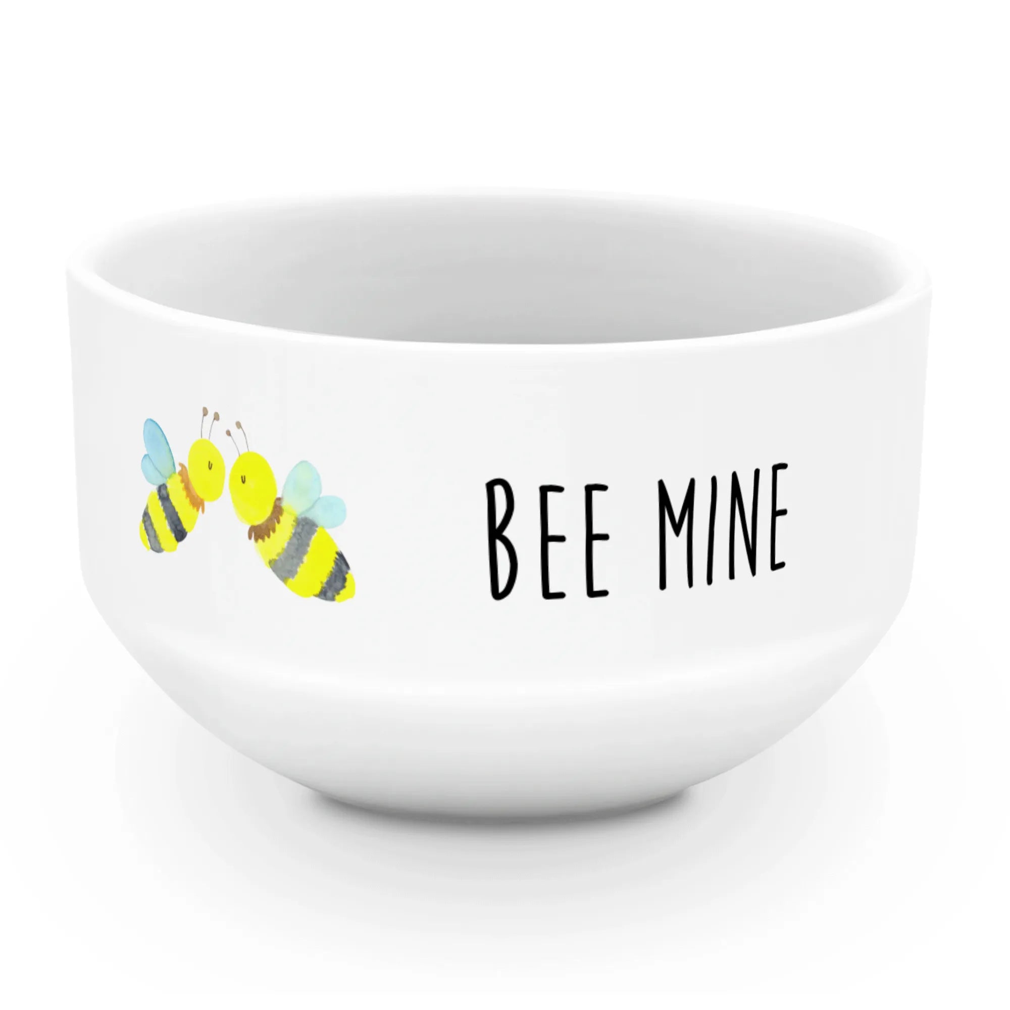 Das liebevoll handgezeichnete Design zeigt zwei süße Bienen, die sich innig küssen und damit nicht nur für gute Laune beim Frühstück sorgen, sondern auch eine Botschaft der Liebe übermitteln. Der festliche Slogan "Bee mine" macht die Schale zu einem echten Hingucker und zu einem tollen Geschenk für viele Anlässe wie Valentinstag, Hochzeiten oder einfach nur so, um jemandem eine Freude zu bereiten.