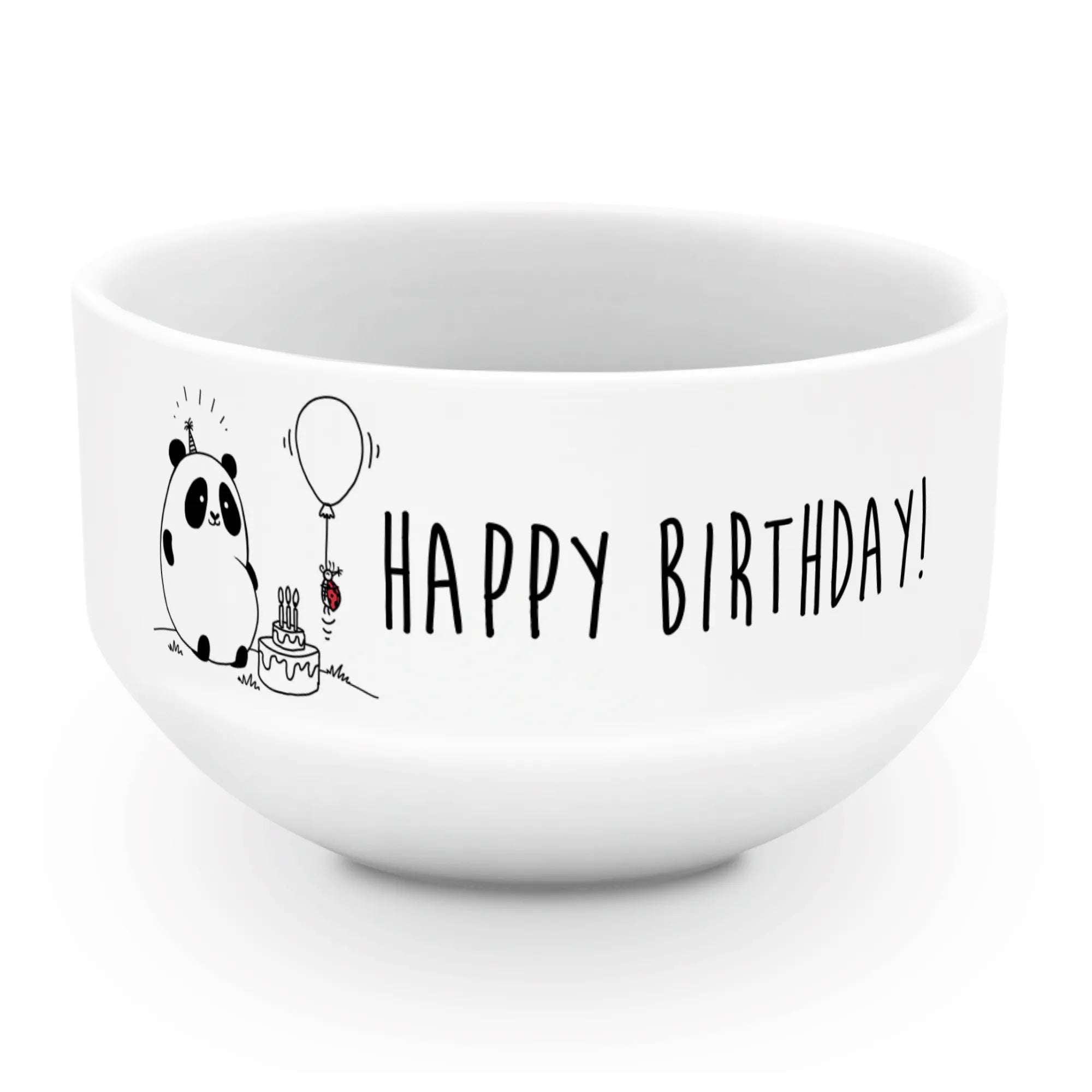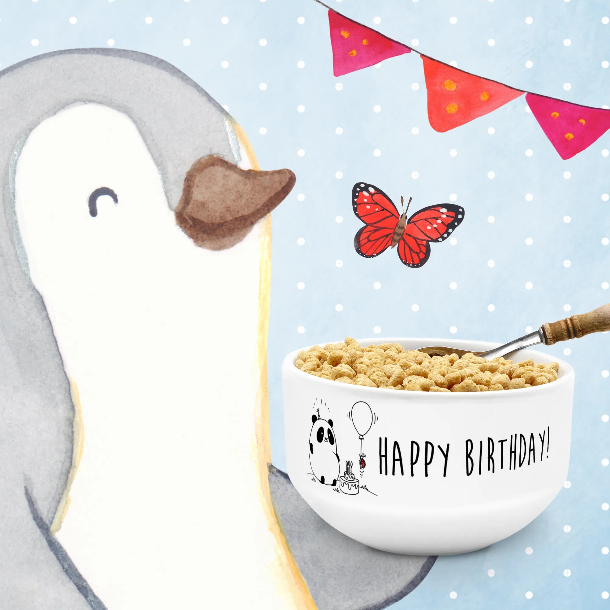 Die Easy & Peasy Kollektion von Mr. & Mrs. Panda begeistert Jung und Alt mit lebhaften und lebensfrohen Designs. Die handgezeichneten Motive von Mrs. Panda verleihen jedem einzelnen Stück einen ganz besonderen Charme. Du kannst diese Schale auch wunderbar verschenken! Ob als lustiges Geschenk für Freunde, als süße Aufmerksamkeit für die Familie oder als besonderes Mitbringsel – die Müslischale passt zu jedem Anlass. Gerade für Menschen, die das Besondere lieben und Freude an niedlichen Designs haben, ist sie das perfekte Geschenk. Verwöhne deine Liebsten oder genieße selbst jeden Bissen mit dieser wunderschönen Schüssel, die dich mit ihrem Spruch "Happy Birthday!" zum Schmunzeln bringen wird! Ein echtes Highlight für jeden Frühstückstisch!