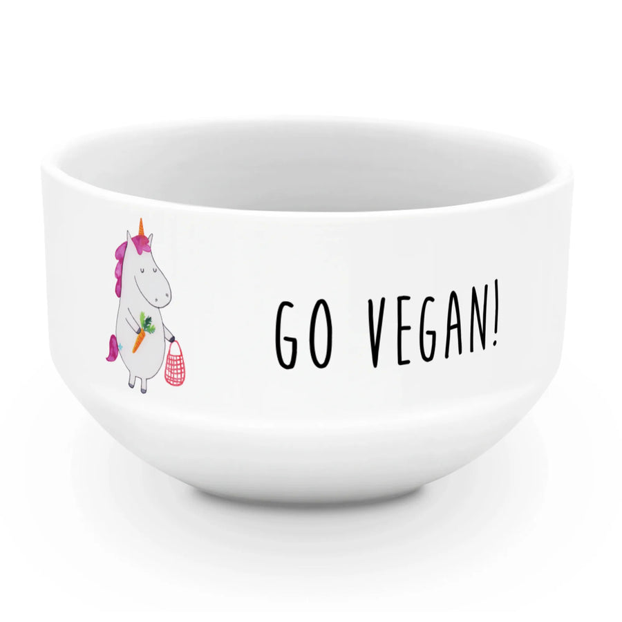 Das wunderschöne Design mit dem Motiv des Einhorns und dem Slogan "GO VEGAN!" inspiriert dich jeden Morgen, gesund und lecker zu essen. Stell dir vor, du startest deinen Tag mit einer Portion knusprigem Müsli, frisch geschnittenen Früchten und vielleicht sogar einer Prise Nüsse - serviert in dieser stilvollen Schüssel.
