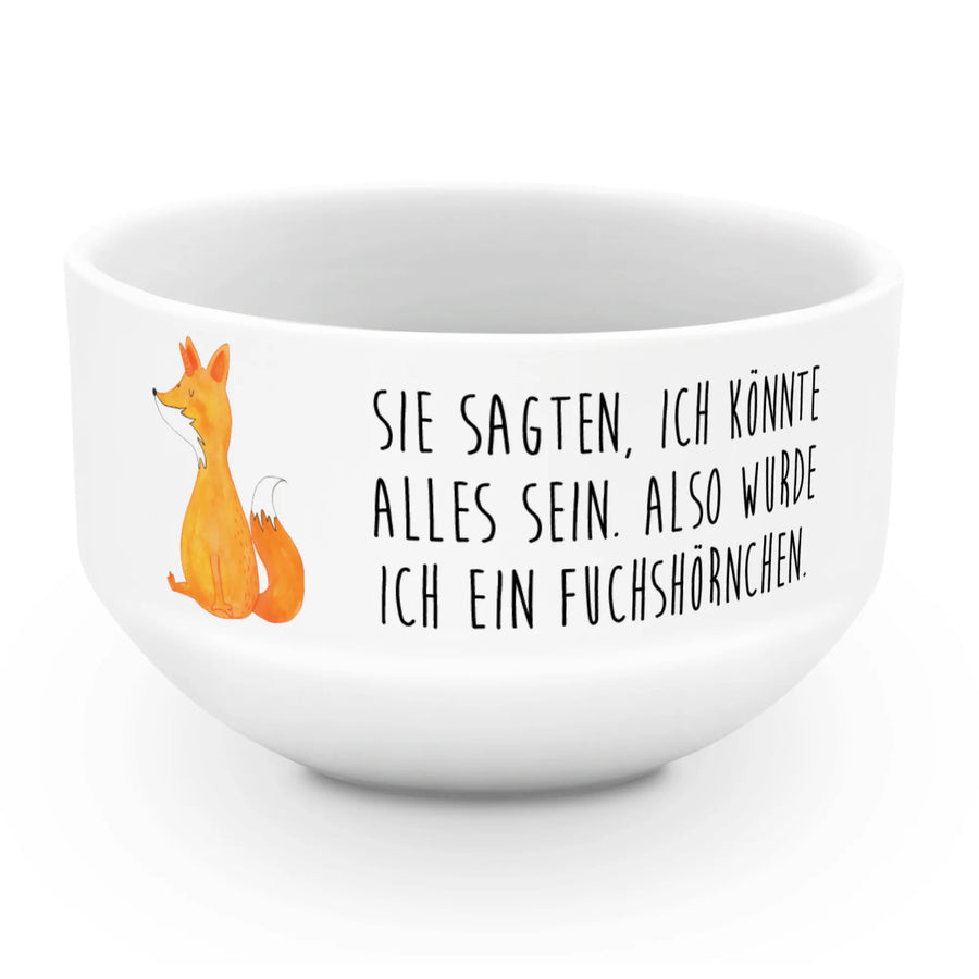 Die handgezeichnete Illustration des orange-gelben Fuchs mit dem spiralförmigen Einhornhorn verbreitet sofort gute Laune. Der niedliche Spruch "Sie sagten, ich könnte alles sein. Also wurde ich ein Fuchshörnchen." gibt der Schüssel ihren besonderen Charme und macht sie perfekt als Geschenk für Freunde und Familie.