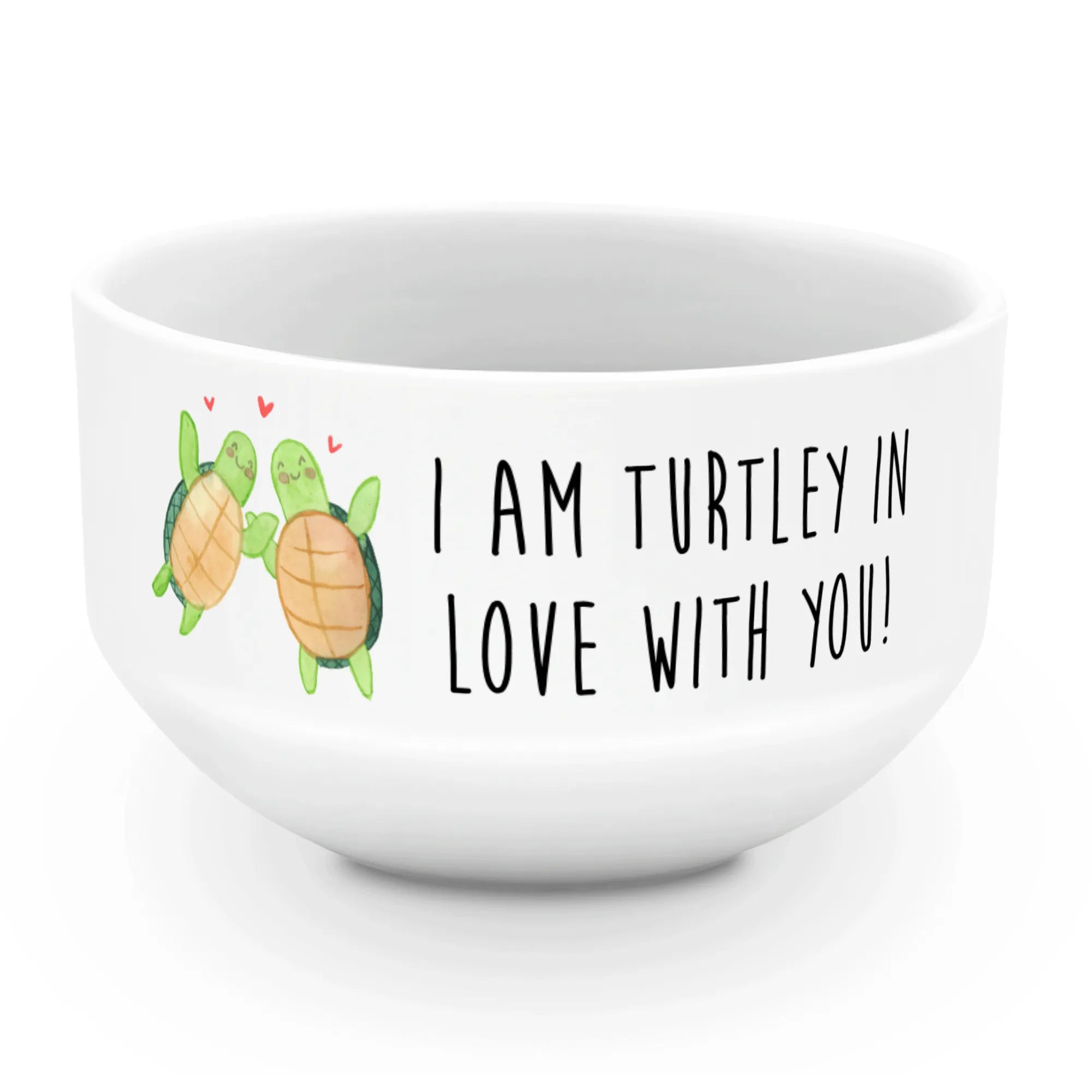 Die wunderschöne Müslischale mit dem entzückenden Motiv der Schildkrötenpaar ist das perfekte Geschenk für alle Liebenden! Mit dem herzlichen Spruch 'I am turtley in love with you!' bringt sie ein Lächeln in den Alltag und verwandelt jedes Frühstück in einen besonderen Moment. Egal ob zum Valentinstag, zur Hochzeit oder als liebevolles Mitbringsel - diese Müslischale ist genau das richtige für deine Freundin, deinen Freund oder deinen Ehemann.