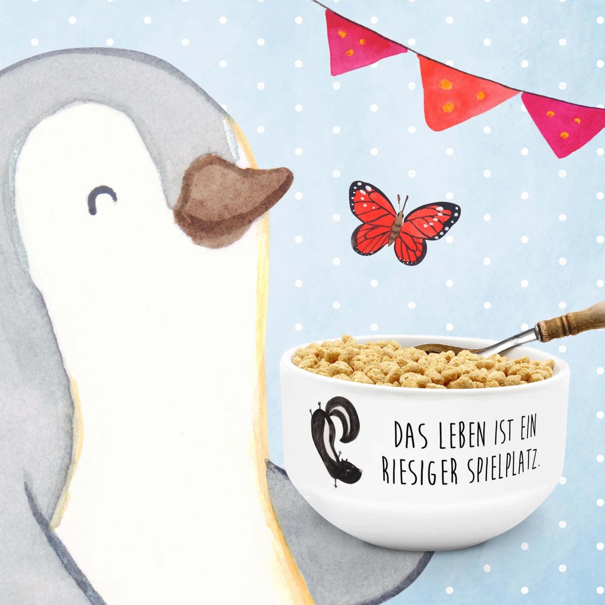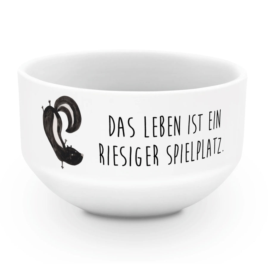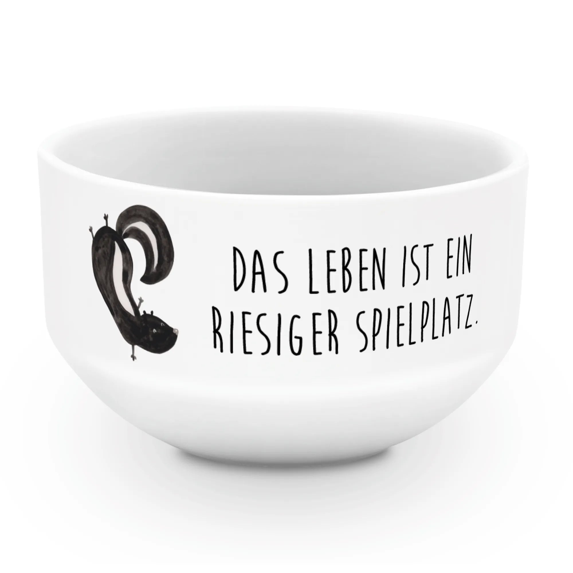 Die Müslischale Stinktier Handstand aus der Stinktier-Kollektion von Mr. & Mrs. Panda ist das perfekte Geschenk für all die Menschen, die das Leben mit Humor und einem Augenzwinkern betrachten. Egal, ob du deinem besten Freund eine Freude machen möchtest, deiner Familie ein schickes Stück für den Frühstückstisch schenken willst oder dich selbst mit etwas Besonderem verwöhnen möchtest – diese Müslischale ist die ideale Wahl!