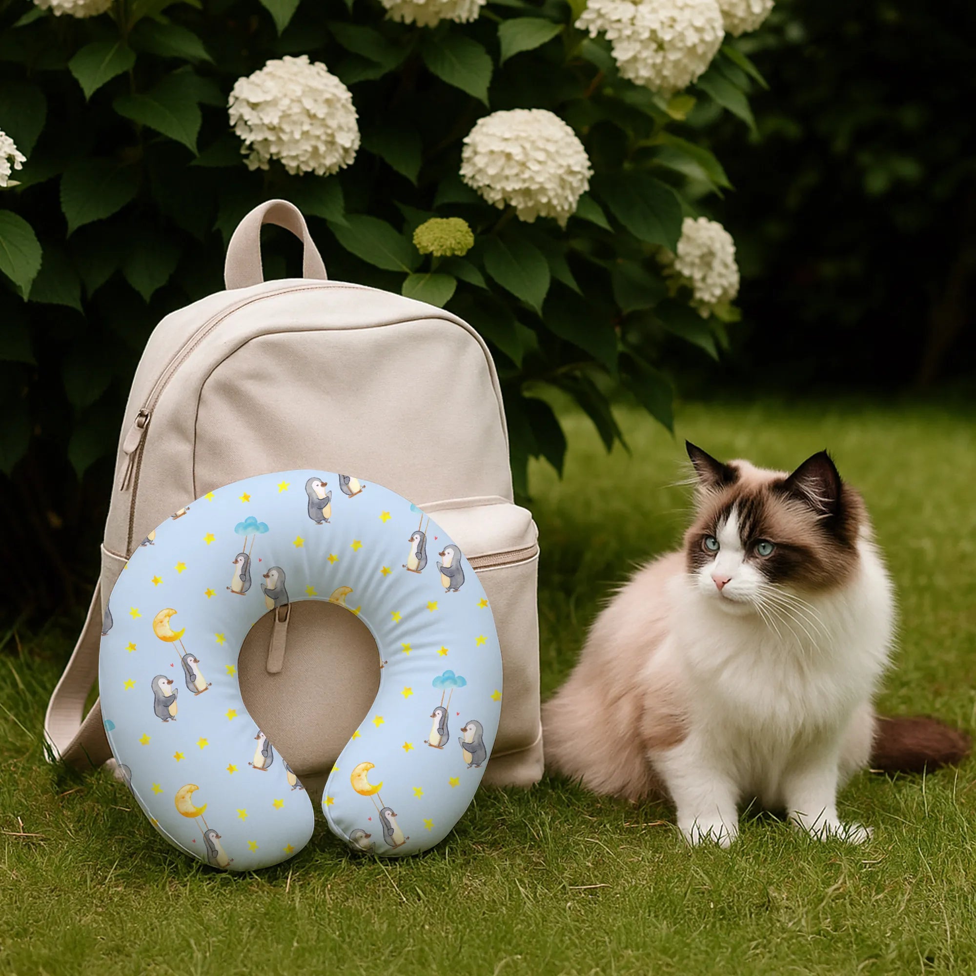 Ein kleines Geschenk mit großer Wirkung: Unser Nackenkissen „Pinguin Oma schaukeln“ aus der Familien-Kollektion von Mr. & Mrs. Panda verbindet Reisekomfort mit liebevoller Illustration. Zwei fröhliche Pinguine auf Schaukeln und der Spruch „Tage mit Oma