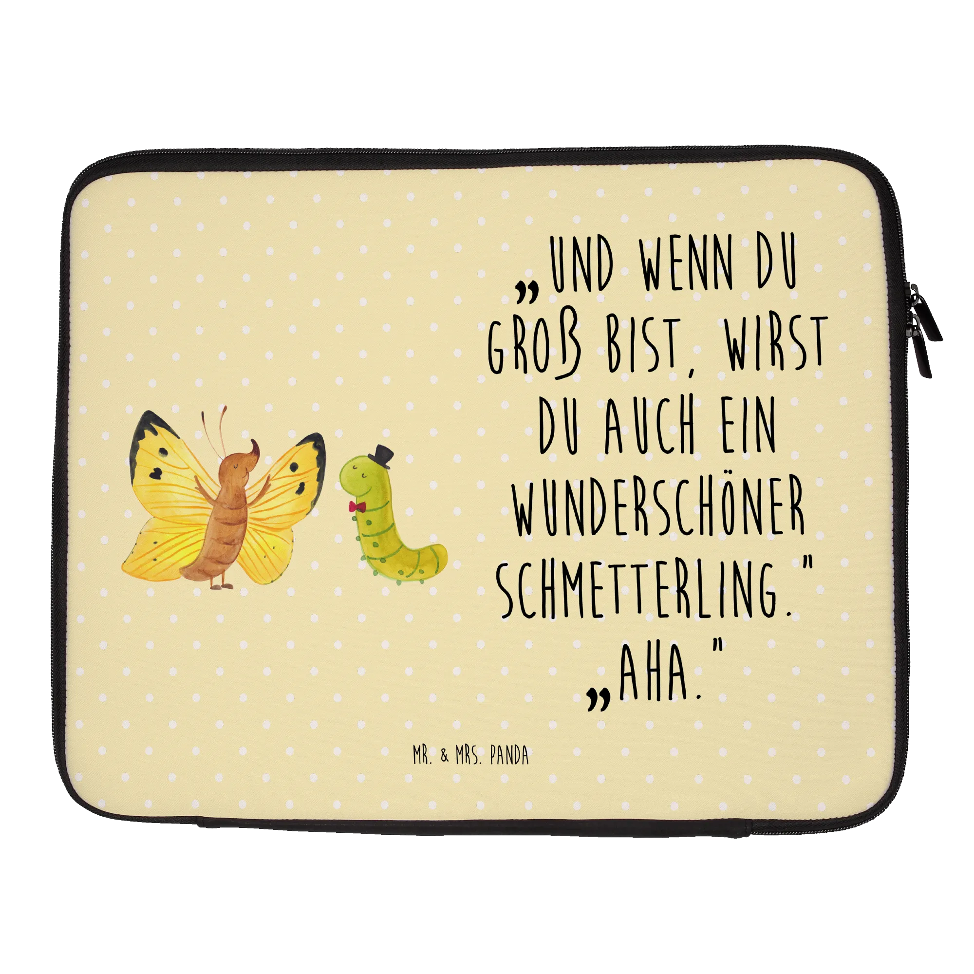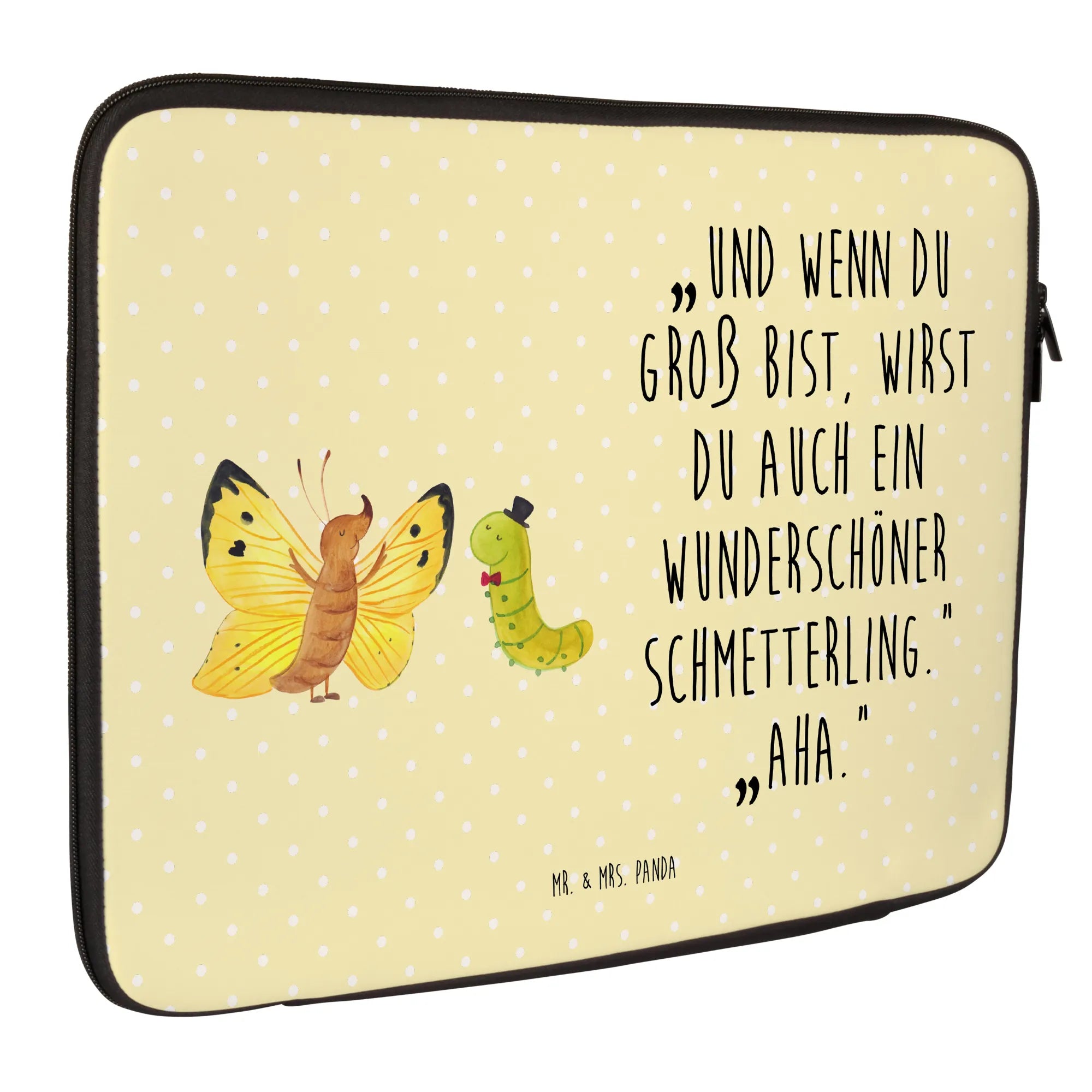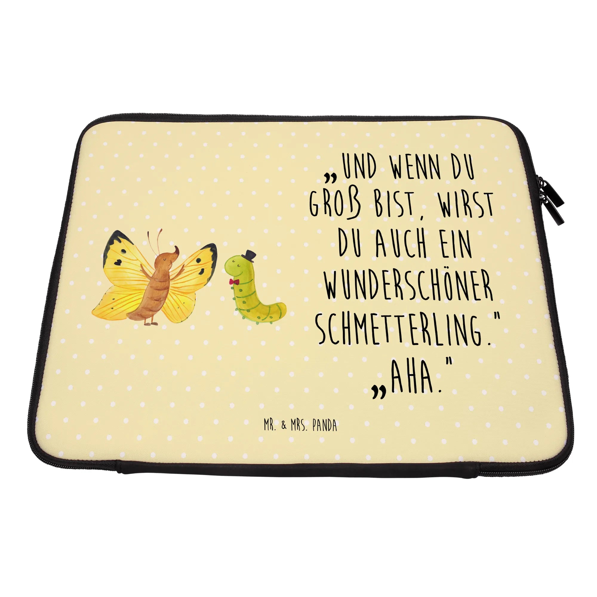 Entdecke die zauberhafte Notebook Tasche mit dem süßen Motiv von Raupe & Schmetterling aus der Small World Kollektion von Mr. & Mrs. Panda. Diese Tasche ist nicht nur ein praktischer Schutz für dein Notebook oder deinen Laptop, sondern auch ein echter Hingucker!