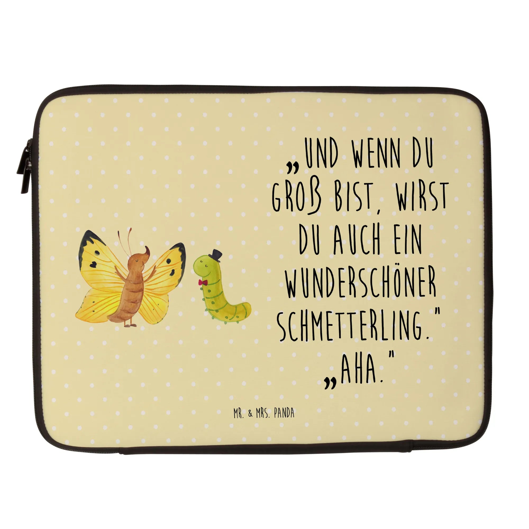 Beschenke dich selbst oder jemanden, der dir wichtig ist, mit dieser liebevoll gestalteten Notebook Tasche. Sie ist perfekt für den täglichen Einsatz und bei Reisen zur Uni, ins Büro oder auf Reisen. Also schnapp dir diese wunderbare Notebook Tasche mit dem Motiv der Raupe und des Schmetterlings und lass dich von ihrer positiven Energie mitreißen! Mit Mr. & Mrs. Panda bist du immer gut ausgestattet auf deinem Weg durch die Welt!