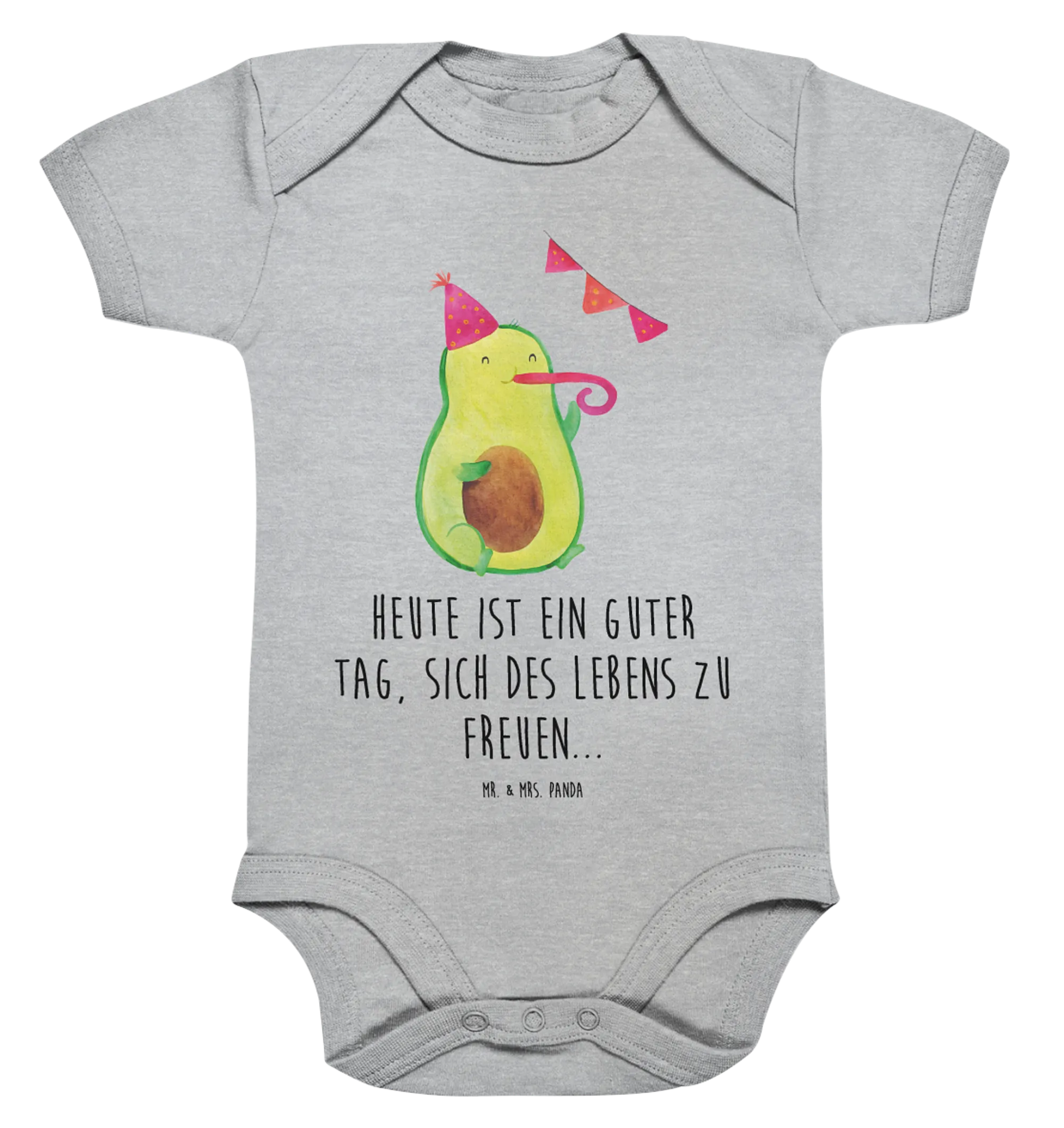Du suchst das perfekte Geschenk für frischgebackene Eltern oder möchtest deinen eigenen kleinen Schatz in etwas ganz Besonderes kleiden? Dann ist der Organic Baby Body "Avocado Party" aus der süßen Avocado Kollektion von Mr. & Mrs. Panda genau das Richtige!