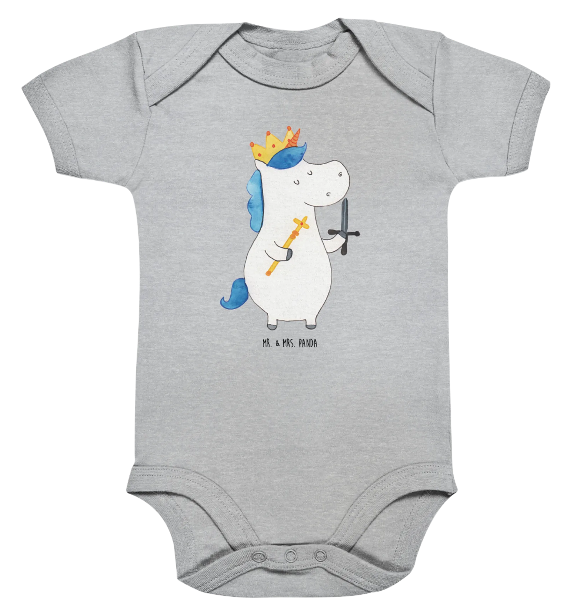 Der Organic Baby Body "Einhorn König mit Schwert" aus der bezaubernden Einhorn-Kollektion von Mr. & Mrs. Panda ist das perfekte Geschenk für kleine Prinzen und Prinzessinnen!