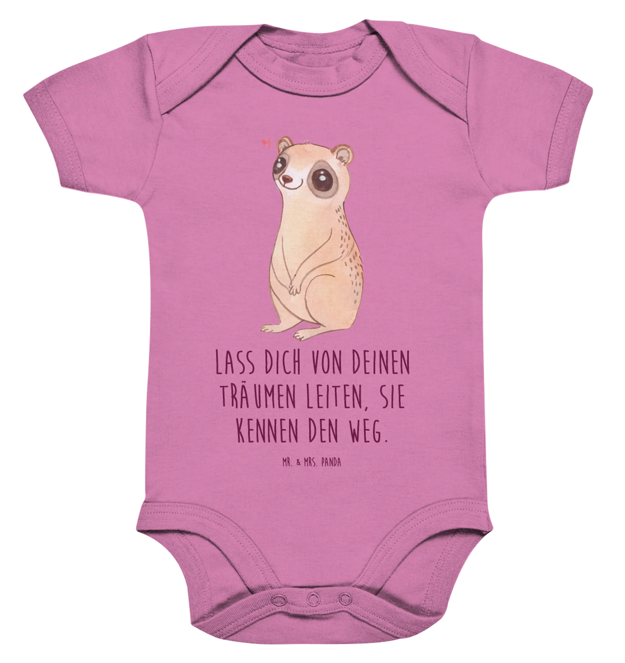 Der Body ist aus hochwertiger, ökologischer Baumwolle gefertigt und sorgt damit für einen sanften und angenehmen Tragekomfort auf der zarten Babyhaut. Die Niedlichkeit des Plumploris gepaart mit dem liebevollen Slogan 'Lass dich von deinen Träumen leiten, sie kennen den Weg.' macht diesen Body zu einem ganz besonderen Kleidungsstück.