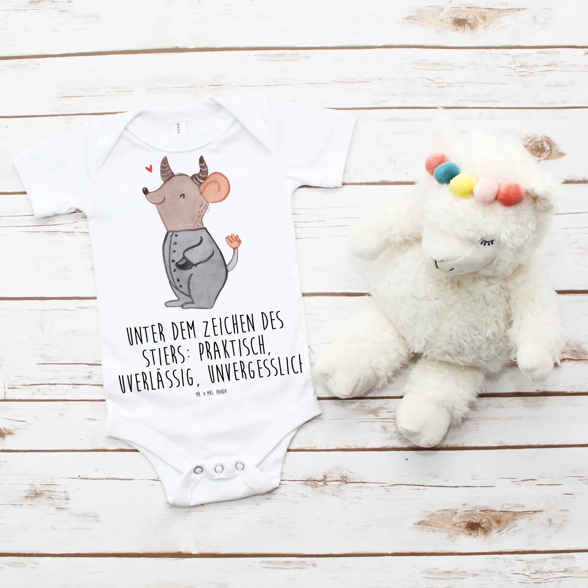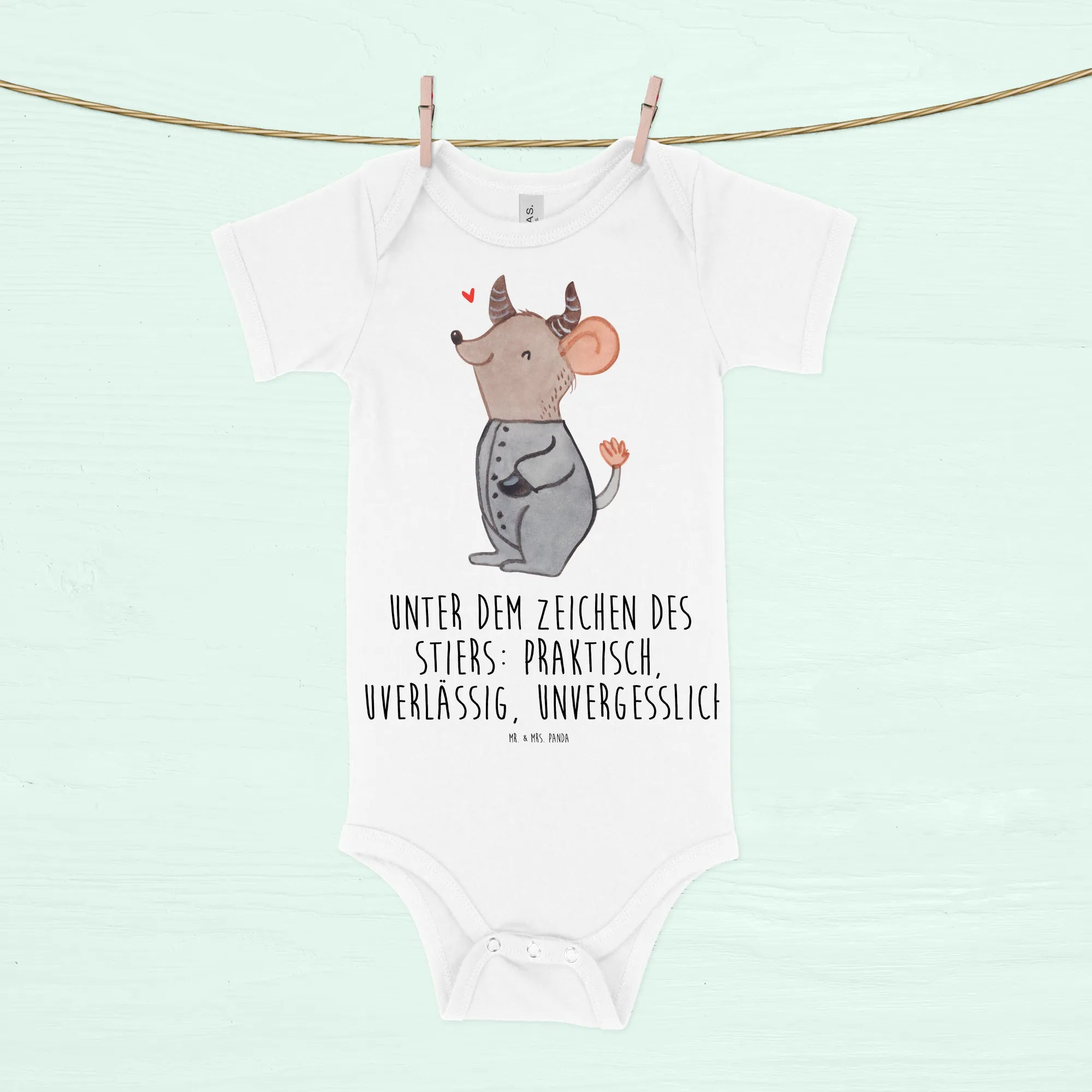 Vertraue auf die Sackstärke der Mr. & Mrs. Panda Produkte und mache mit diesem einzigartigen Babystrampler etwas ganz Besonderes. Ein ideales Geschenk für Baby-Partys, Taufen oder als süßes Mitbringsel zu Besuchen bei Freunden oder Verwandten. Verschenke einen unvergesslichen ersten Eindruck und entdecke die Geheimnisse des Sternzeichens Stier!