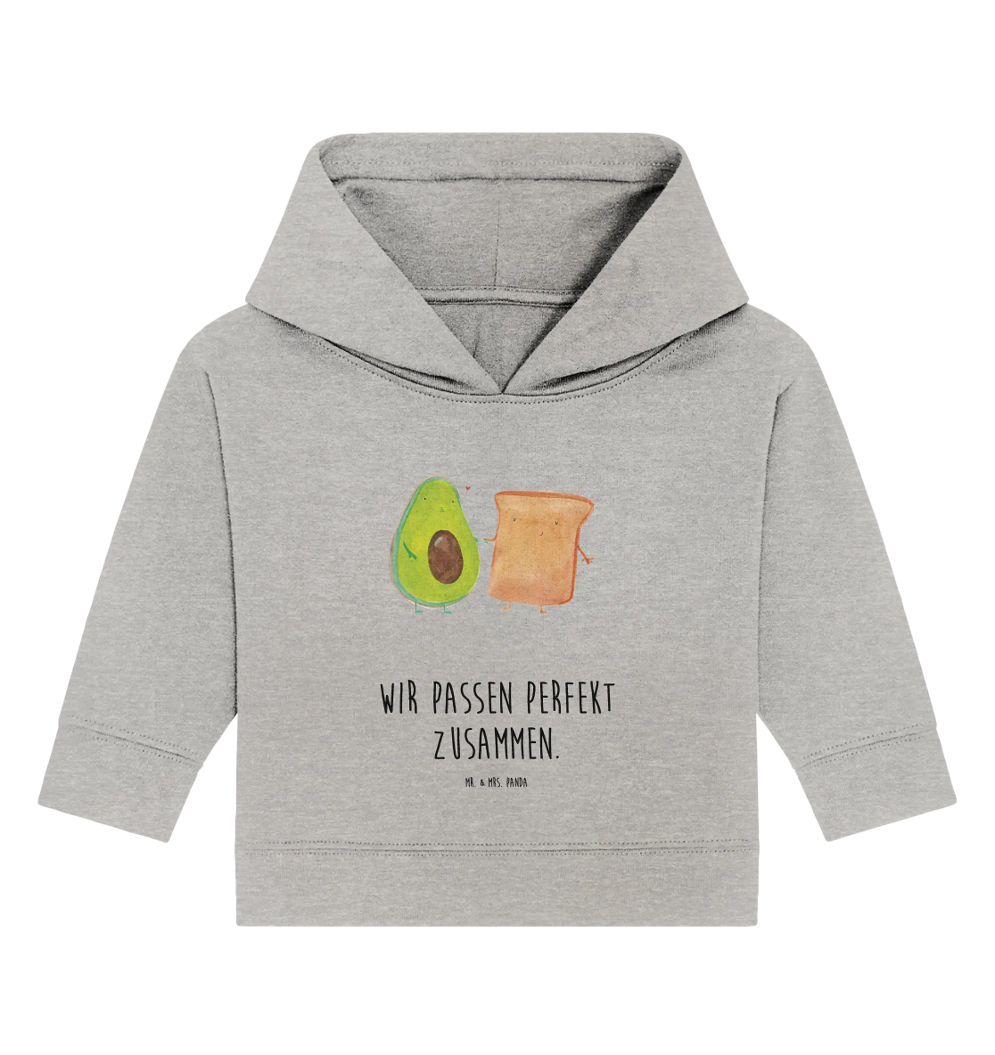 Ideal für dein Baby oder als niedliches Geschenk zur Verlobungsparty, Hochzeit oder zum Jahrestag. Egal ob du es fürs eigene Baby oder als Geschenk zur Geburt in Betracht ziehst, dieses Hoodie wird Herzen höher schlagen lassen. Es verkörpert den leichten und fröhlichen Lebensstil, den die Avocado-Kollektion von Mr. & Mrs. Panda verspricht. Die zeitlosen Motive und die positive Botschaft "Wir passen perfekt zusammen" machen dieses Sweatshirt zu einem unverzichtbaren Kleidungsstück für dein Baby.