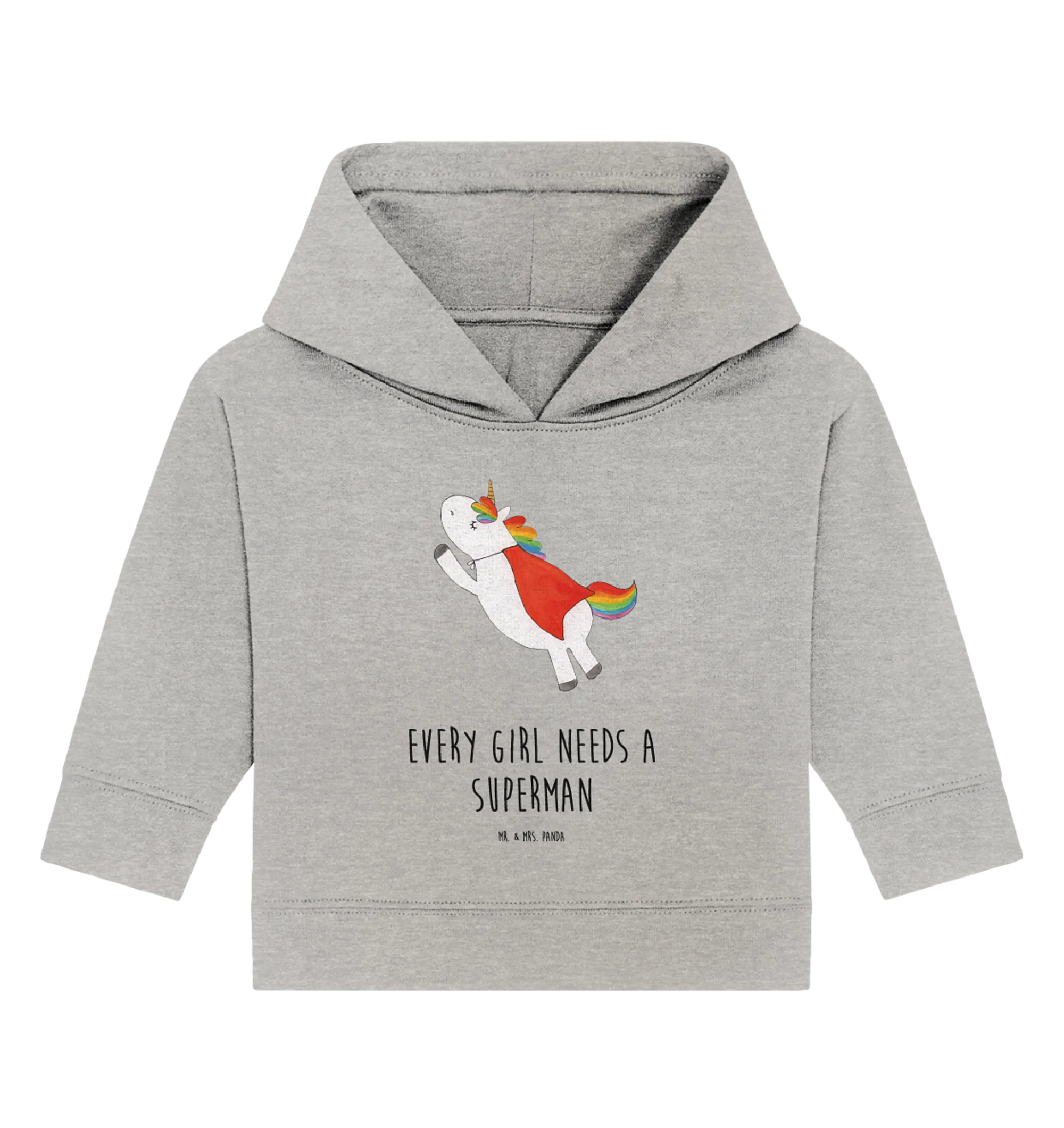 Wenn du nach einem besonderen Geschenk für das kleine Mädchen in deinem Leben suchst, ist das Organic Baby Hoodie "Einhorn Super" aus der zauberhaften Einhorn-Kollektion von Mr. & Mrs. Panda genau das Richtige! Dieses süße Kapuzenshirt mit dem traumhaften Einhorn-Motiv bringt nicht nur Freude, sondern auch eine Portion Magie in den Alltag deines kleinen Lieblings.