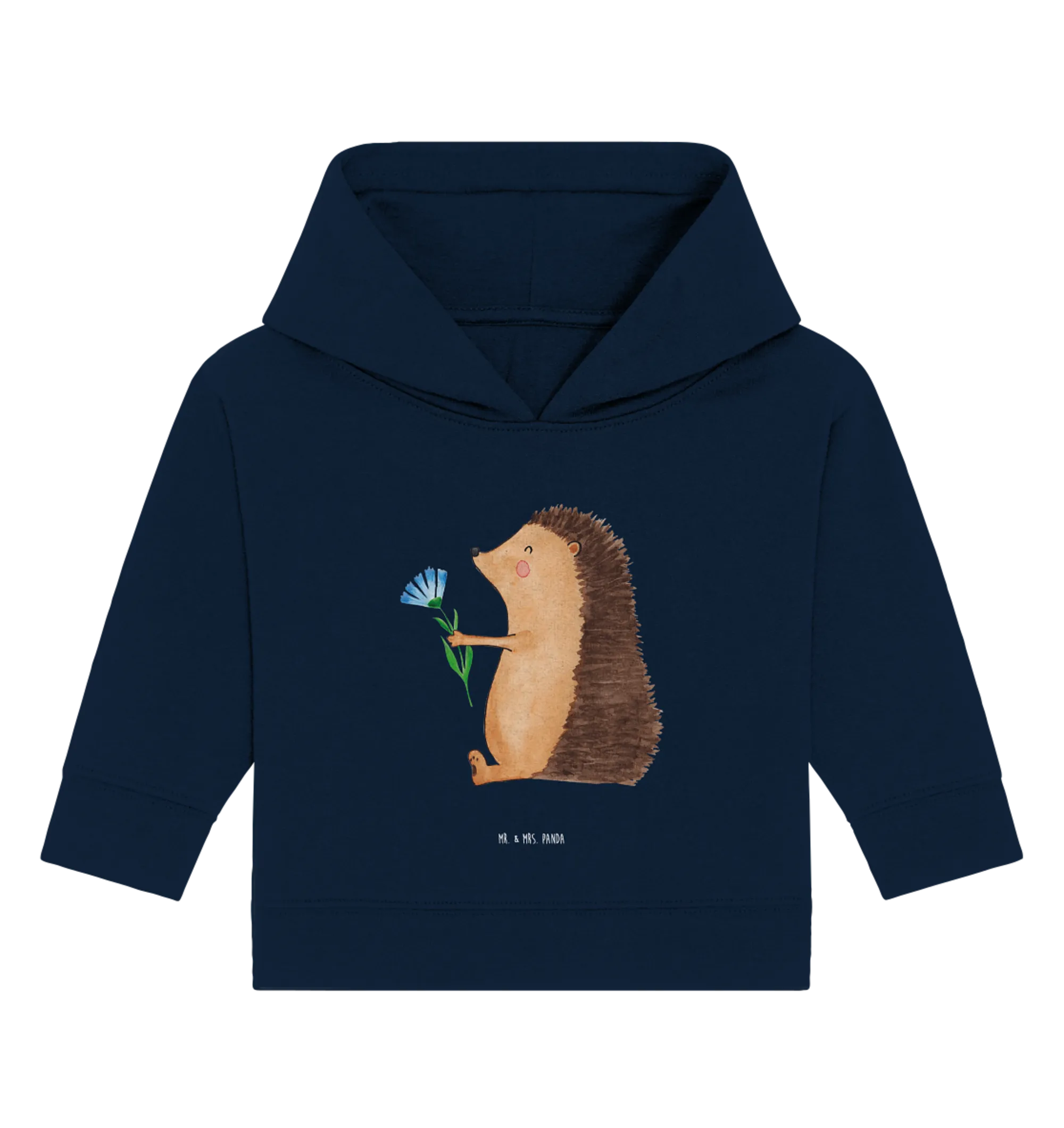 Organic Baby Hoodie Igel Blumen - 12. - 18. Monat - mit Spruch - French Navy