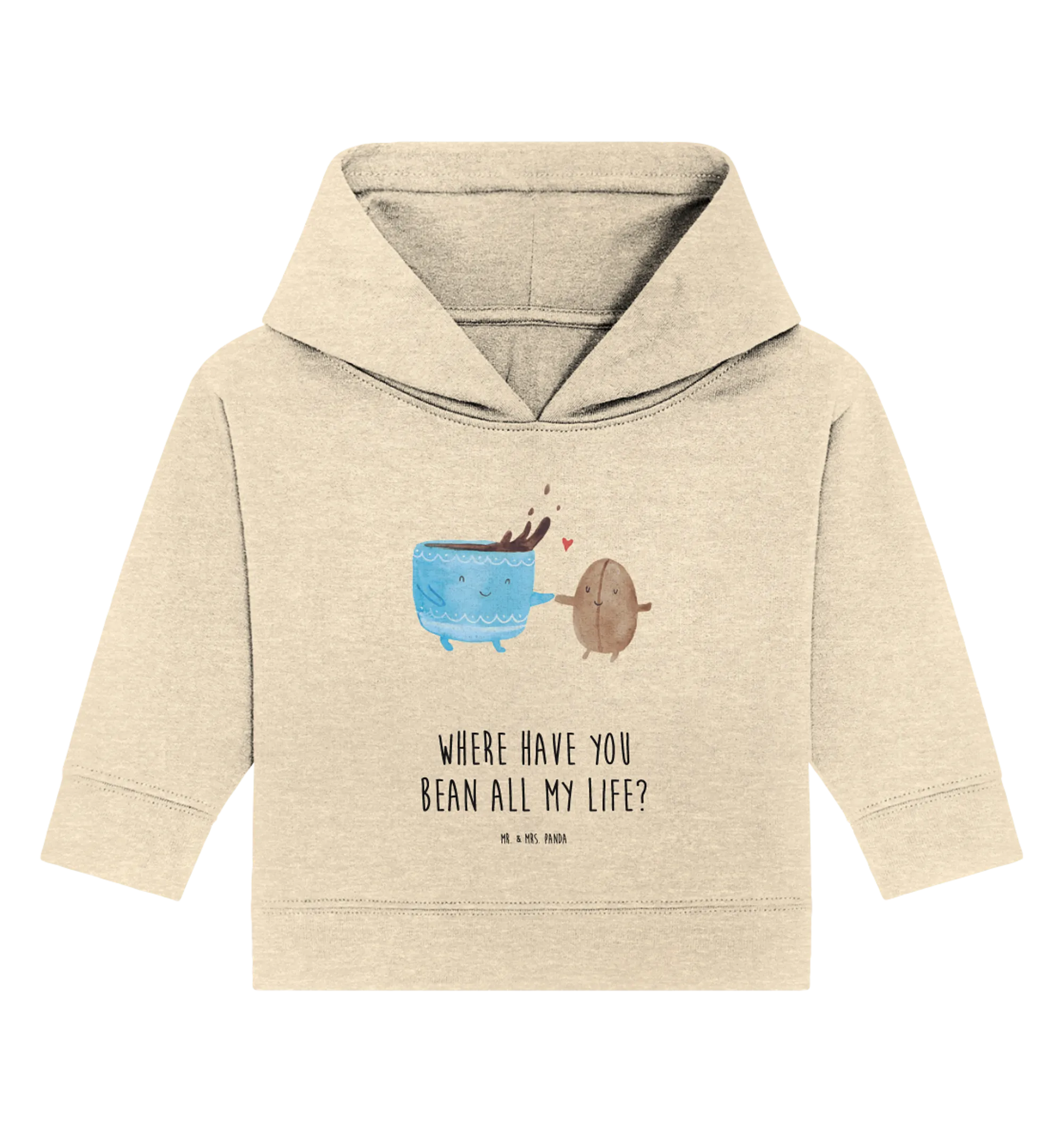 Das Organic Baby Hoodie mit dem fröhlichen Kaffee-Bohne Motiv aus der bezaubernden Small World Kollektion von Mr. & Mrs. Panda ist das ideale Geschenk für alle kleinen Kaffeeliebhaber und ihre Eltern!