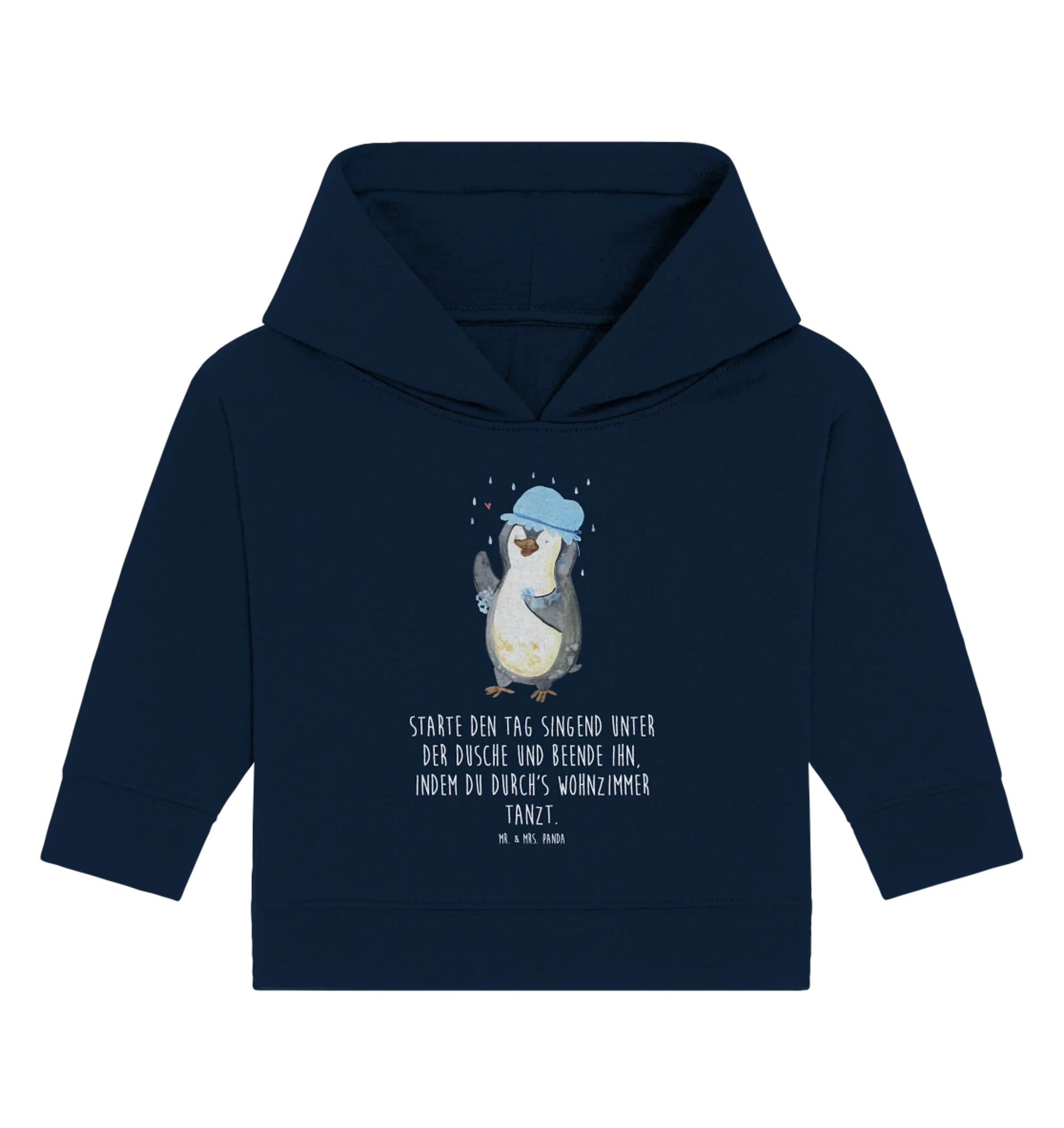 Kaufe jetzt das Organic Baby Hoodie "Pinguin duscht" und bringe Freude in das Leben eines kleinen Erdenbürgers! Dieser Hoodie ist nicht nur ein Kleidungsstück, sondern auch eine kleine Motivation für jeden neuen Tag – perfekt, um Kinder zum Lachen und Spielen einzuladen!