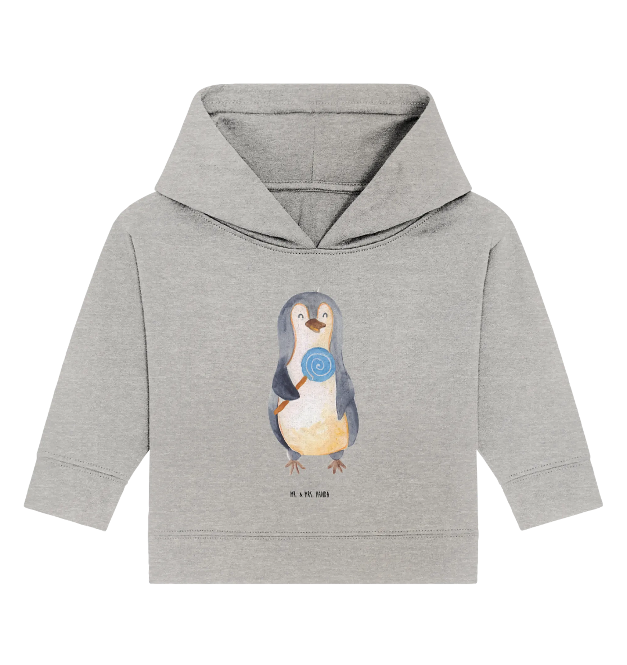 Das Organic Baby Hoodie mit dem süßen Pinguin Lolli-Motiv aus der Pinguin-Kollektion von Mr. & Mrs. Panda ist das perfekte Geschenk für kleine Rebellen und Gauner im Alter von 12 bis 18 Monaten. Es verbindet Komfort und Style in einem niedlichen Design, das jedes Kind zum Strahlen bringt! Du blickst in das niedliche Gesicht des Pinguin Lollis und lässt dich von seinem herzlichen Blick verzaubern. In seiner flauschigen Hand hält er stolz seinen Lieblingslutscher und lässt dich fast das zuckersüße Aroma riechen. Das von Mr. & Mrs. Panda handgezeichnete Motiv kombiniert einen putzigen Pinguin mit kindlicher Unbeschwertheit und lässt dich dahinschmelzen.