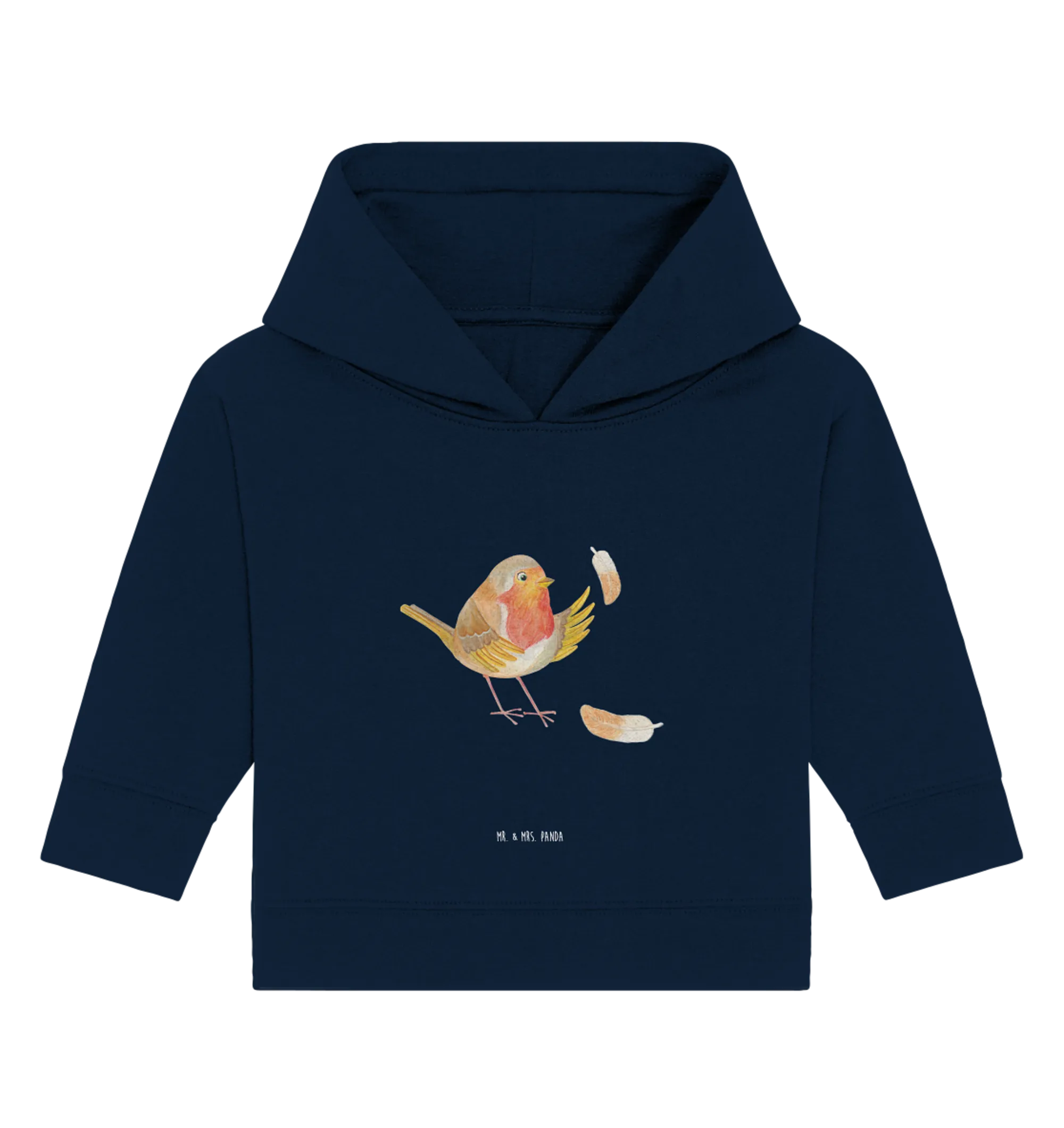 Das Organic Baby Hoodie "Rotkehlchen mit Federn" aus der Small World Kollektion von Mr. & Mrs. Panda ist mehr als nur ein Kleidungsstück; es ist eine kleine Umarmung für dein Baby.