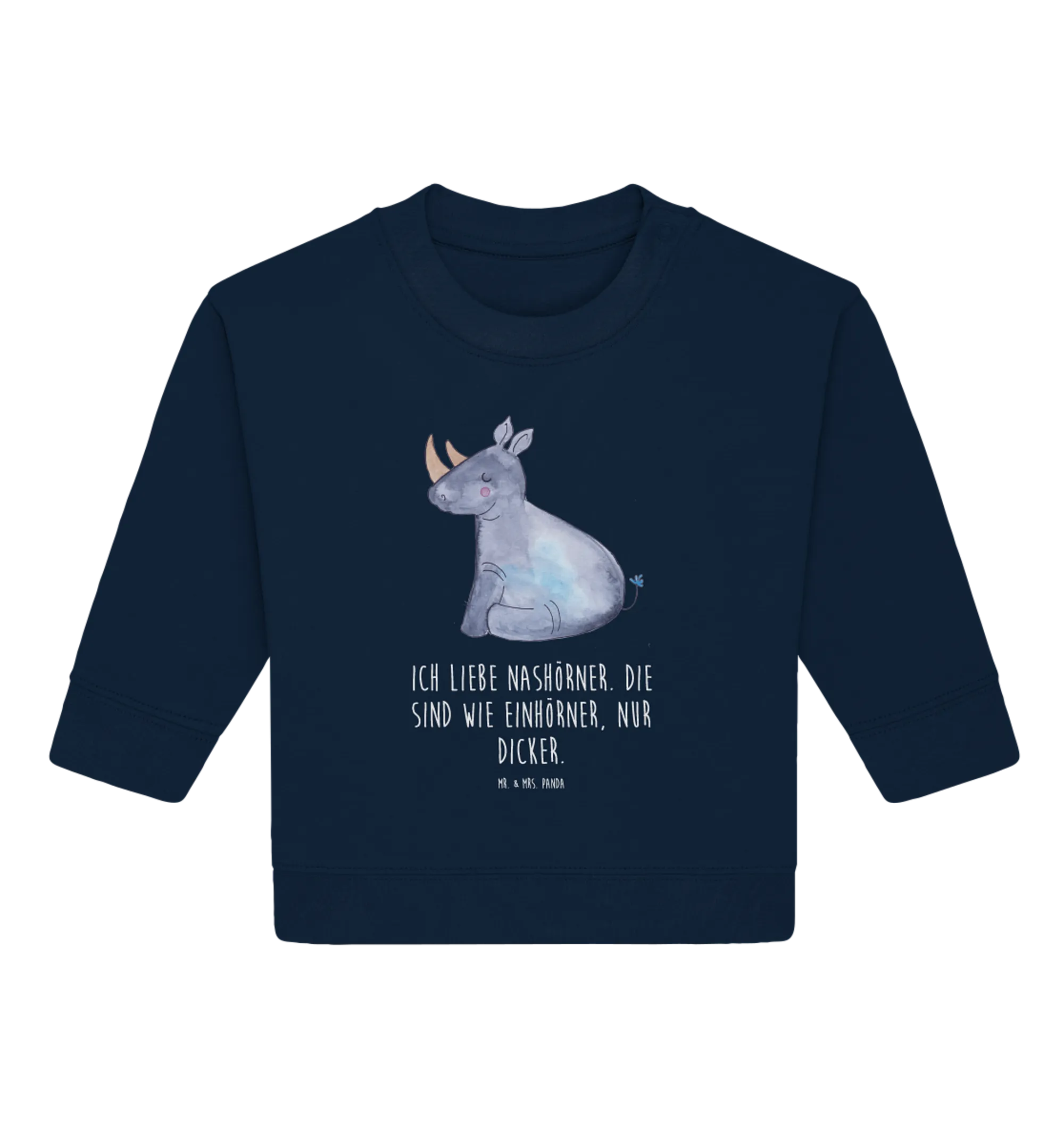 Entdecke den zauberhaften Organic Baby Pullover mit dem witzigen Einhorn Nashorn Motiv aus der exklusiven Einhorn - Kollektion von Mr. & Mrs. Panda!