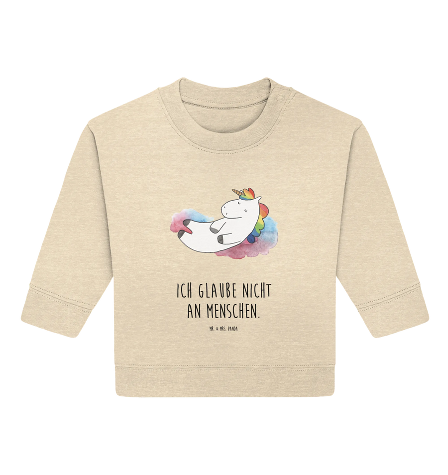 Entdecke den magischen Organic Baby Pullover mit dem zauberhaften Motiv "Einhorn Wolke 7" von der einzigartigen Einhorn-Kollektion von Mr. & Mrs. Panda! Dieser Pullover ist nicht nur stylisch und süß, sondern sorgt auch für ein Lächeln auf jedem Gesicht. Das entspannte Einhorn, das auf seiner Wolke sitzt, ist sicher: Menschen gibt es gar nicht! Vielleicht ist das der Grund, warum es so entspannt ist. Du möchtest deinem kleinen Liebling etwas ganz Besonderes schenken? Dann ist dieser Pullover das perfekte Geschenk!