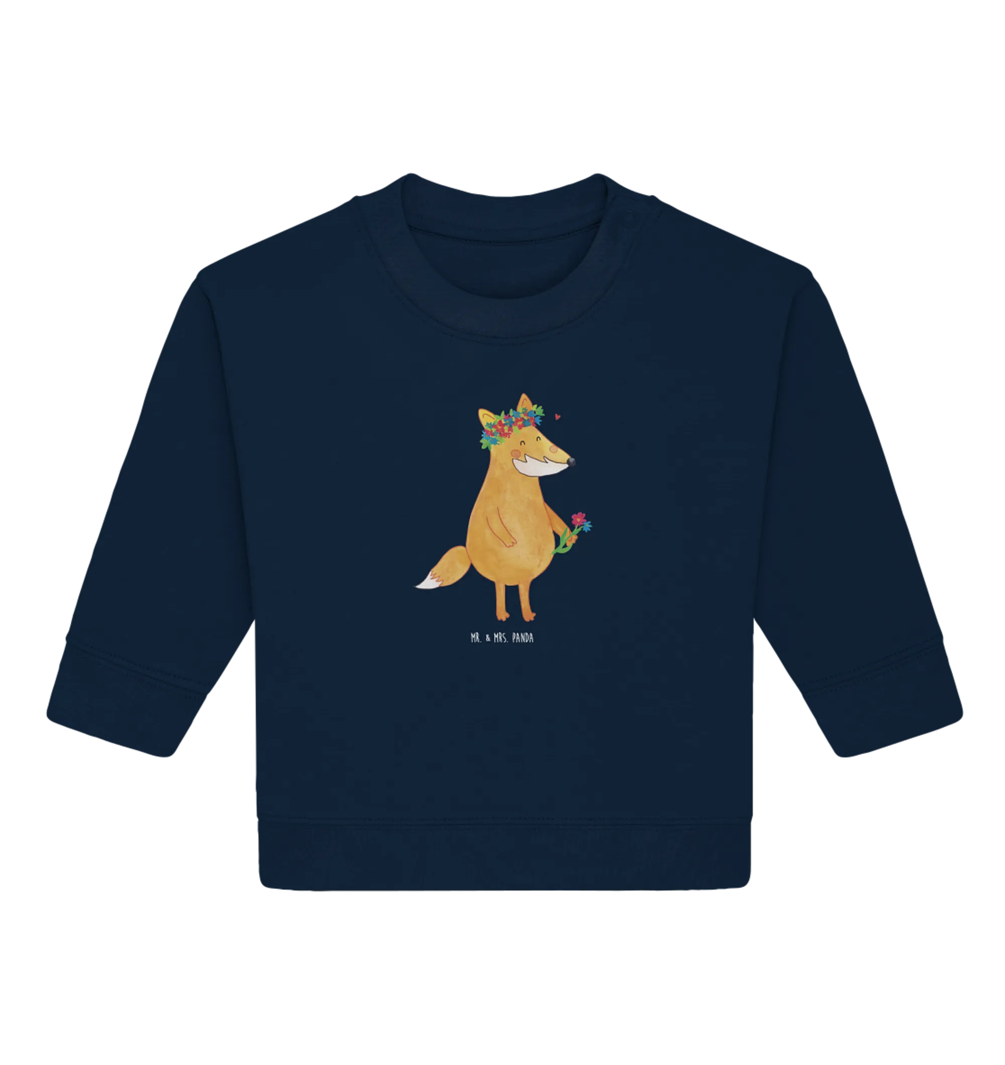 Entdecke den zauberhaften Organic Baby Pullover "Fuchs Blumenliebe" aus der Kollektion Fuchs von Mr. & Mrs. Panda!
