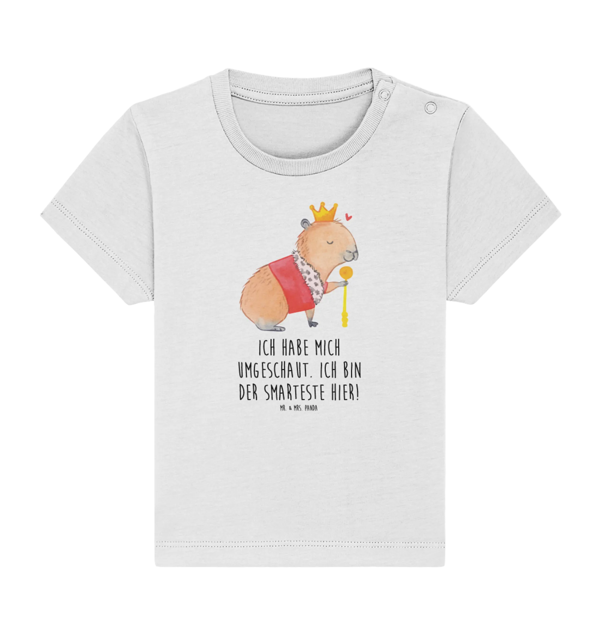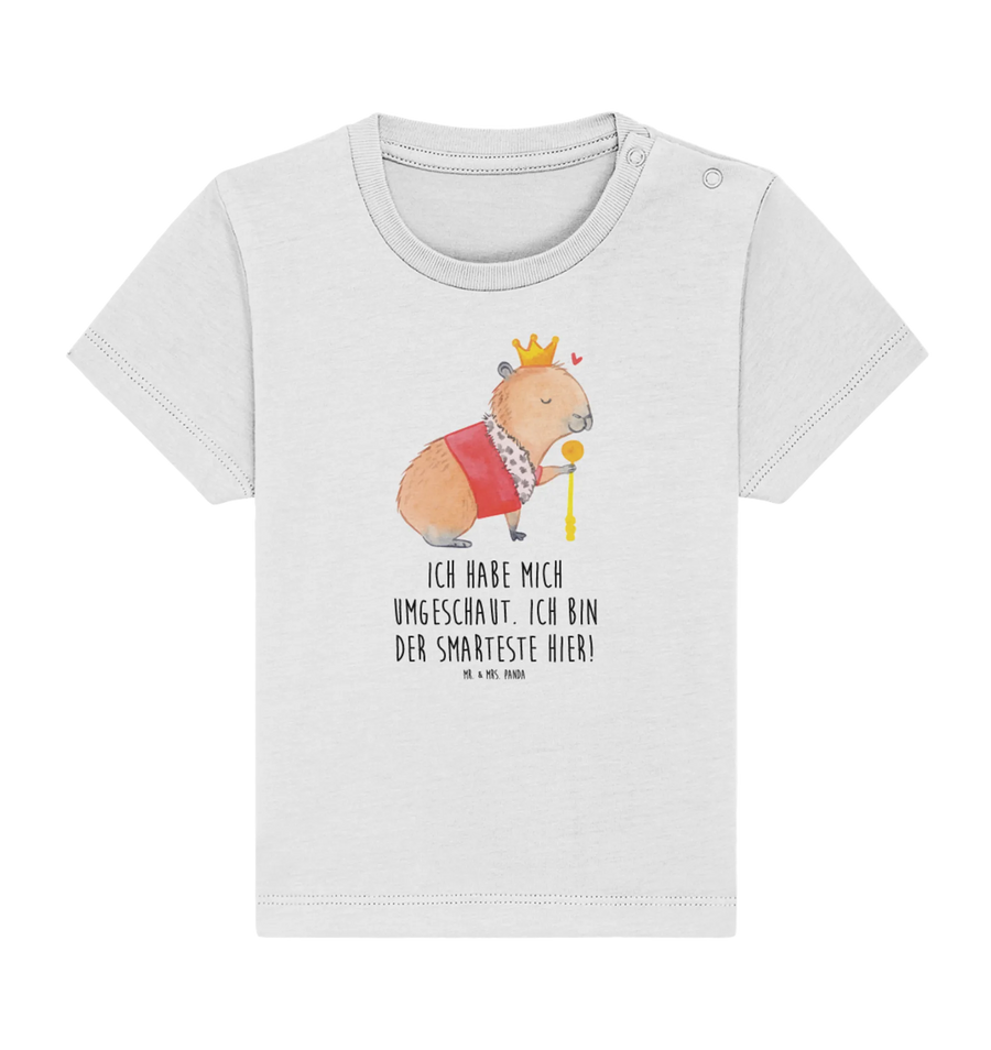 Das Capybara, als König seines kleinen Königreichs, lässt nicht nur Kinderherzen höherschlagen, sondern eignet sich auch wunderbar als Geschenk zu besonderen Anlässen. Ob zur Geburt, zur Taufe oder als liebevolles Mitbringsel zur Babyparty – dieses Shirt ist ein echter Hingucker! Der humorvolle Spruch „Ich habe mich umgeschaut. Ich bin der Smarteste hier!“ bringt nicht nur die Erwachsenen zum Schmunzeln, sondern weckt auch die Neugier der Kleinen.