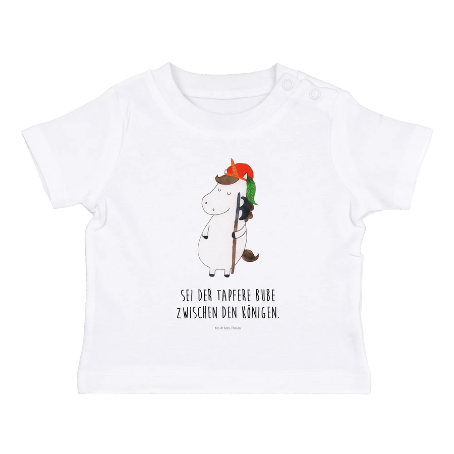 \nDu möchtest das Shirt verschenken oder selbst für dein Kind kaufen? Dann ist das Organic Baby Shirt Einhorn Bube genau die richtige Wahl. Es bringt Farbe und Freude in jeden Kleiderschrank und dient gleichzeitig als wunderbares Erinnerungsstück für Eltern und Kinder. Lass dein Kind der tapfere Bube zwischen den Königen sein und finde die Magie der Einhörner in der zauberhaften Welt von Mr. & Mrs. Panda! 🌟