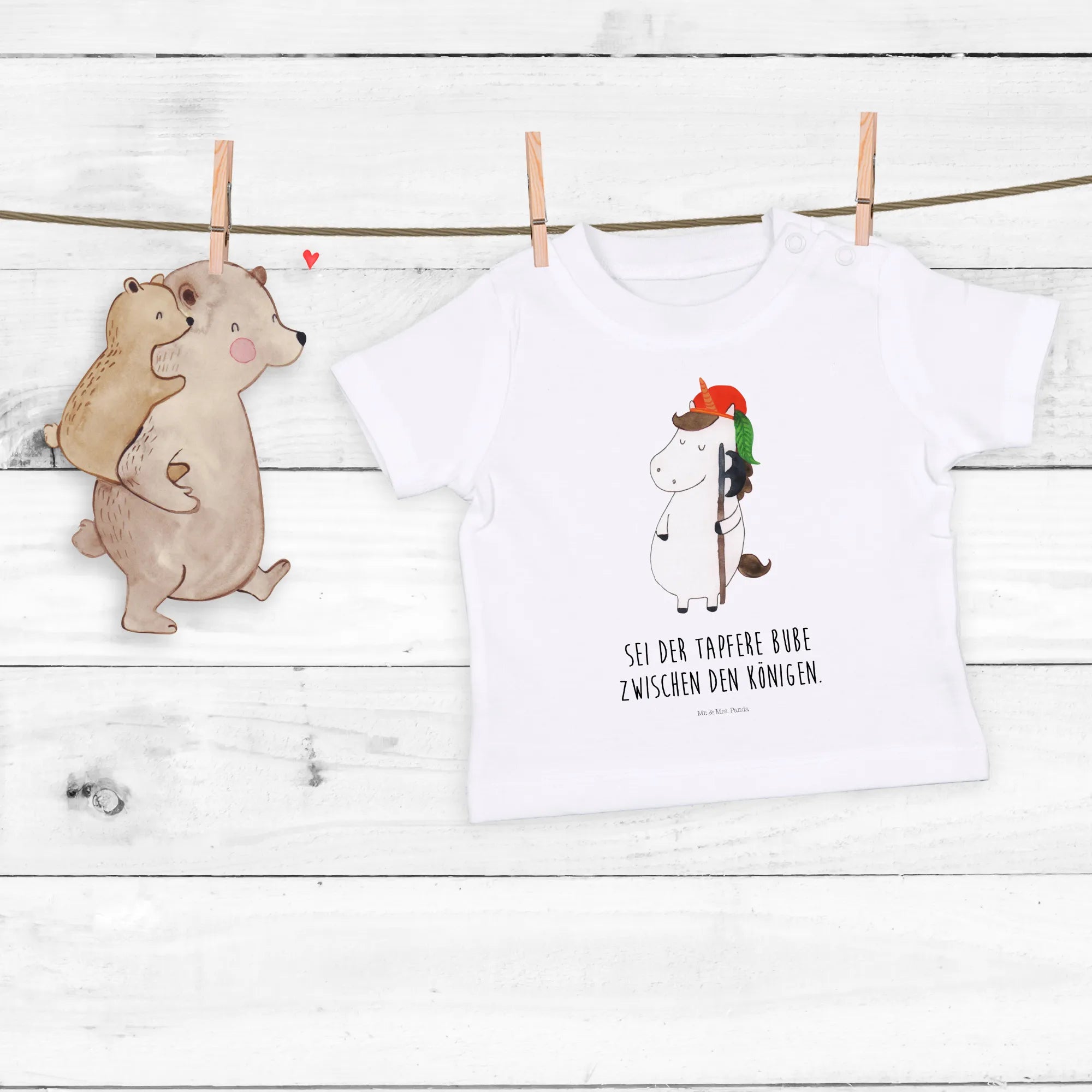 Das Organic Baby Shirt 'Einhorn Bube' aus der bezaubernden Einhorn-Kollektion von Mr. & Mrs. Panda ist das perfekte Geschenk für alle kleinen Abenteurer!