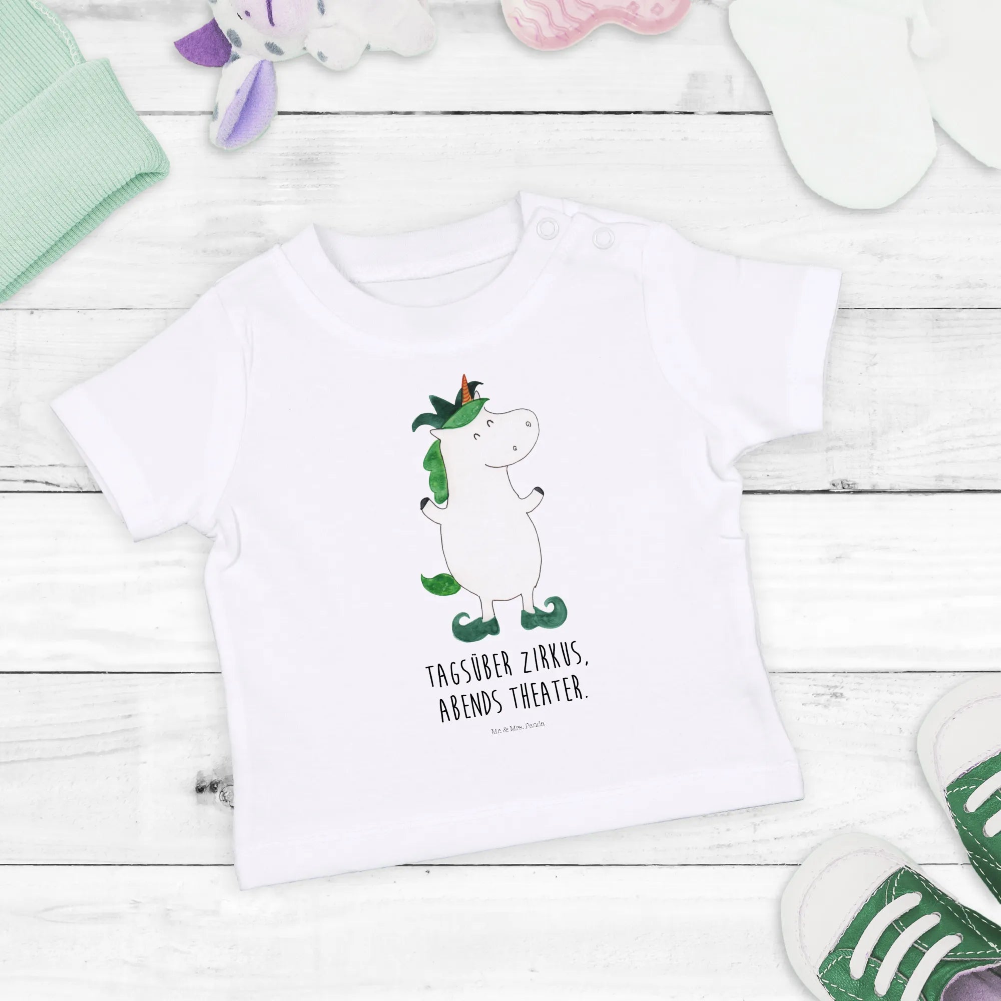 Das Organic Baby Shirt mit dem bezaubernden Motif 'Einhorn Joker' aus der Einhorn-Kollektion von Mr. & Mrs. Panda ist das perfekte Geschenk für junge Eltern, die ihren kleinen Lieblingen etwas ganz Besonderes bieten möchten! Ob für einen Neugeborenen oder einen Baby-Jungen oder ein Baby-Mädchen – dieses Shirt besticht durch sein liebevolles und farbenfrohes Design. Die niedlichen Einhörner und der fröhliche Gaukler bringen eine magische Note in den Alltag des Kindes.