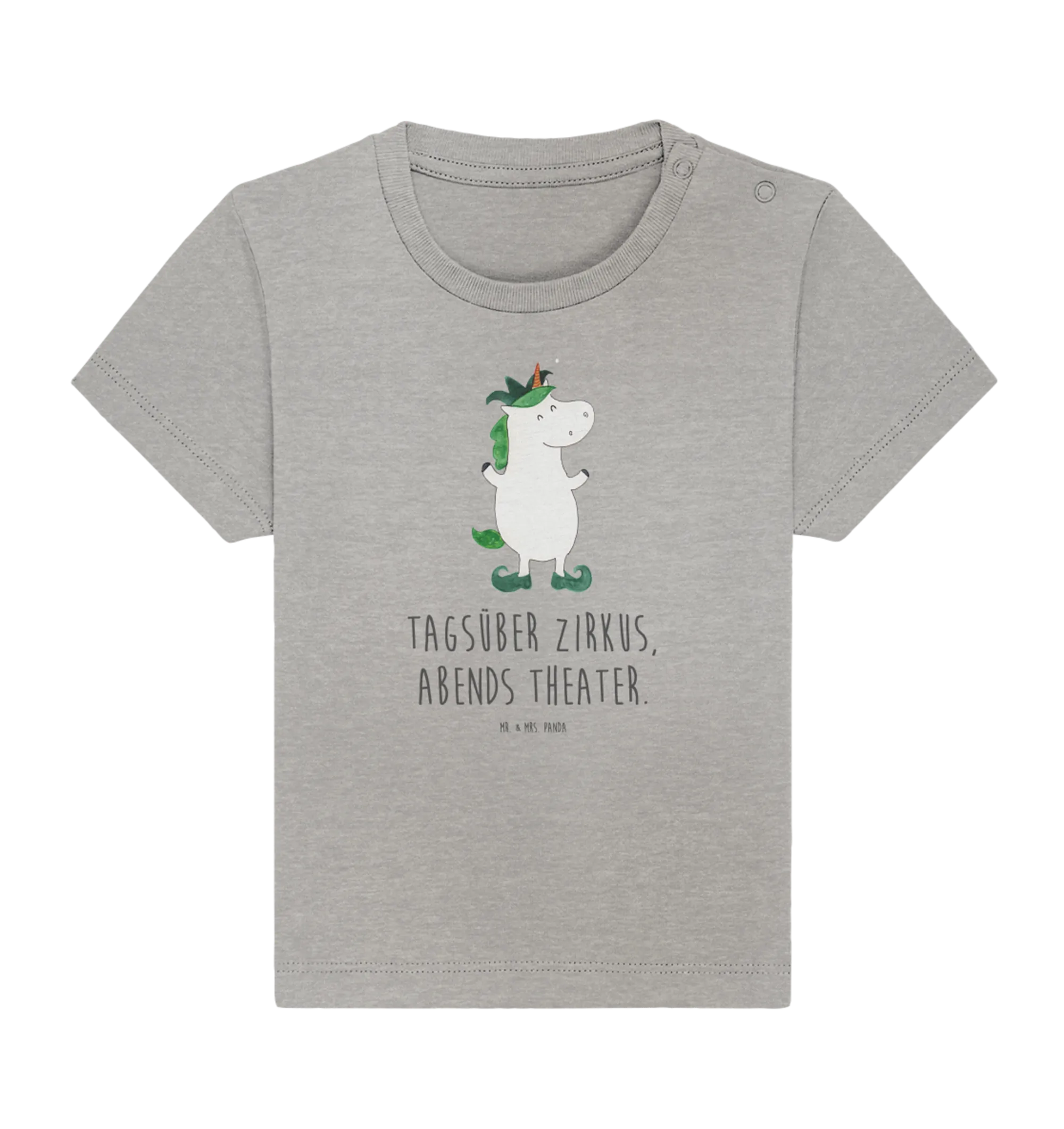 Das hübsche Heather Grey sorgt dafür, dass das Shirt zu jedem Outfit passt. Wenn Du auf der Suche nach einem liebevollen und praxisnahen Geschenk bist, dann ist dieses Artikel sicherlich genau das Richtige für Dich. Kinder-Dekoration und Geschenkideen aus der Einhorn-Kollektion von Mr. & Mrs. Panda sind immer ein Hit und sprechen sowohl kleine Mädchen als auch Jungen an. Hol Dir jetzt das Einhorn Joker Baby Shirt und sorge für strahlende Augen bei Deinem kleinen Liebling!