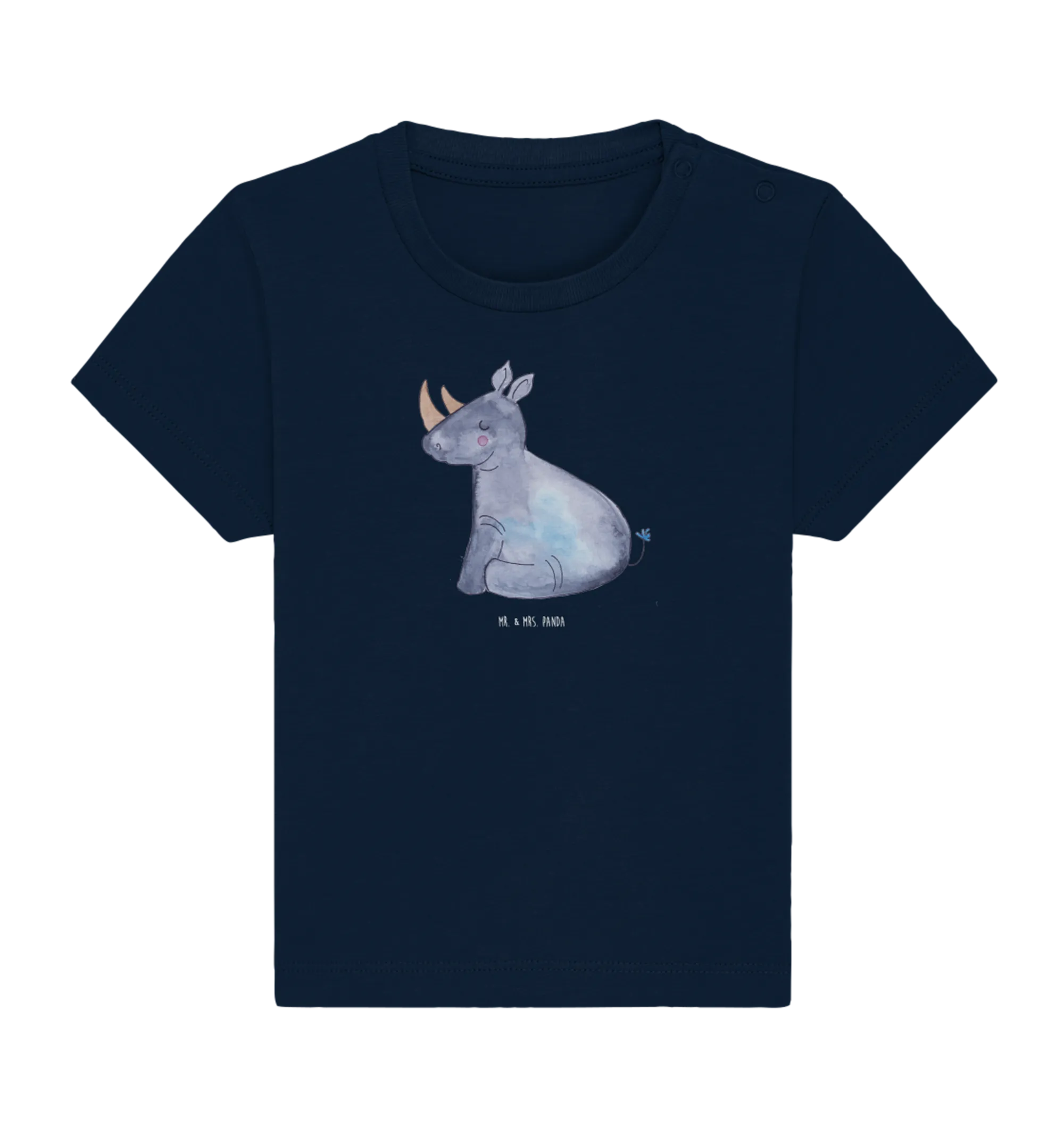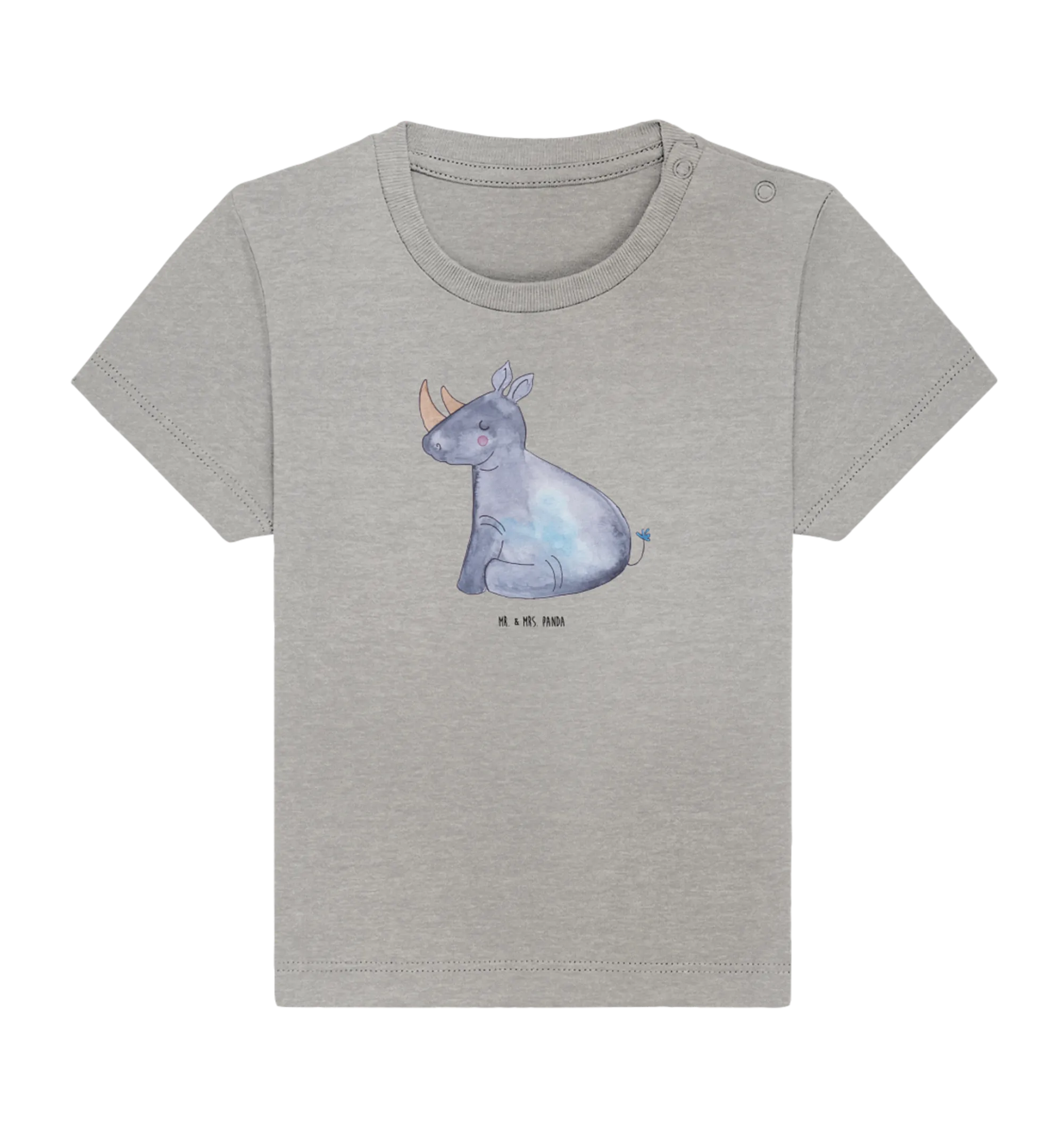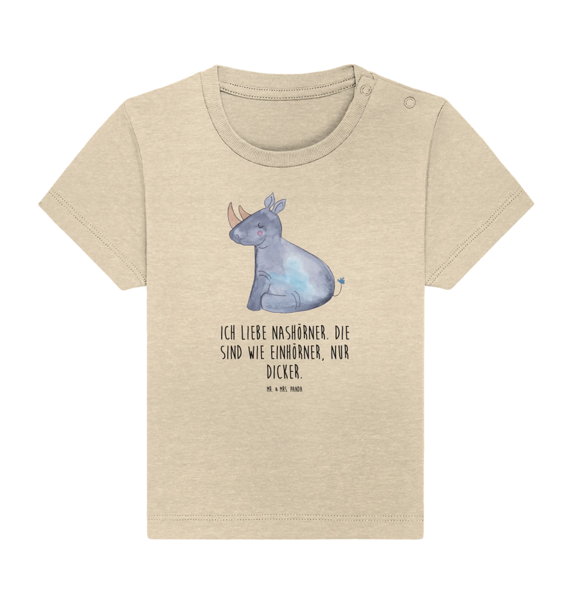 Das liebevoll handgezeichnete Design von Mrs. Panda bringt das witzige Nashorn zusammen mit dem magischen Einhorn in einem harmonischen Motiv zur Geltung. Mit dem Slogan "Ich liebe Nashörner. Die sind wie Einhörner, nur dicker." ist dieses Shirt ein richtiger Hingucker und bringt sicher viele liebevolle Komplimente. Es eignet sich hervorragend als Geschenk zur Geburt, für das erste Babyfest oder einfach als Überraschung für den eigenen kleinen Liebling.