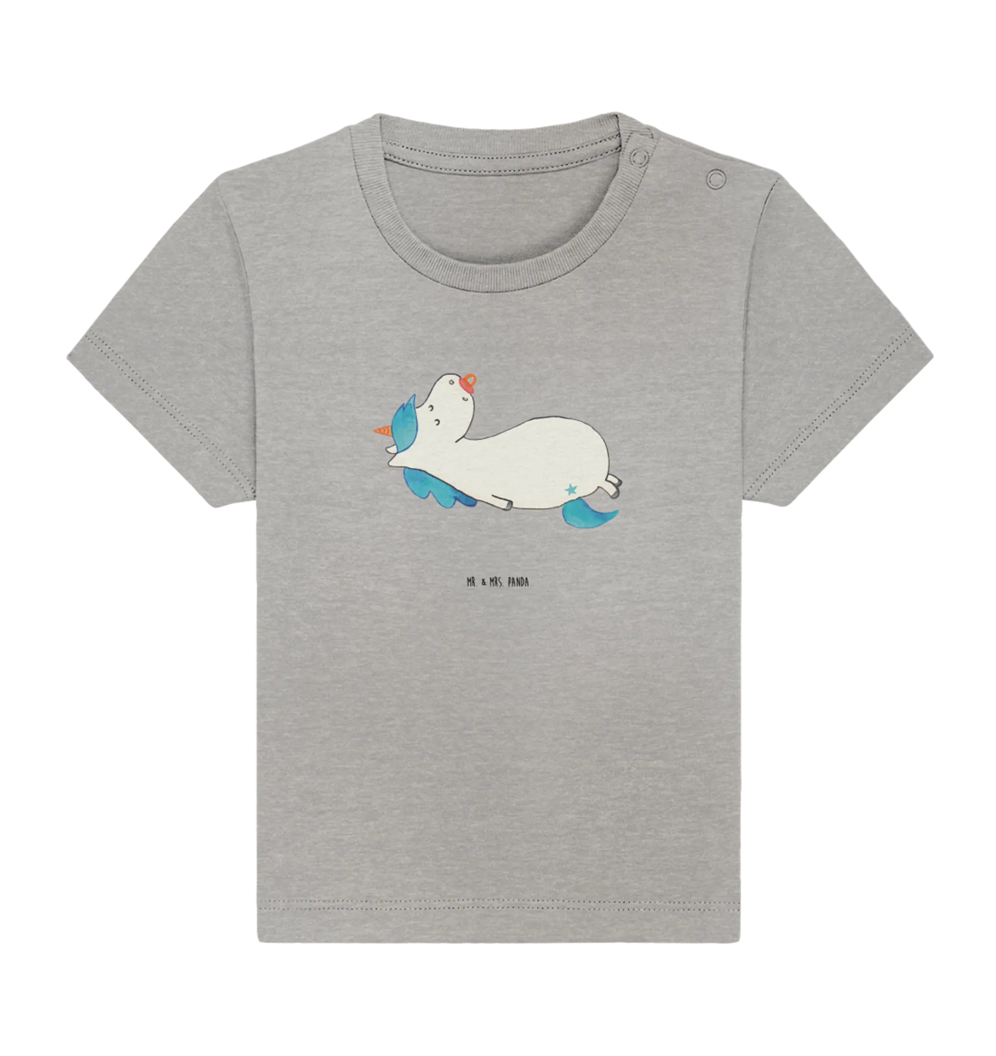 Das Shirt ist aus hochwertiger Öko-Baumwolle gefertigt, die nicht nur angenehm auf der zarten Babyhaut ist, sondern auch umweltfreundlich produziert wurde. Dieses bezaubernde Baby T-Shirt mit dem zuckersüßen Einhorn, das friedlich mit einem Schnuller im Mund schläft, ist nicht nur ein echter Hingucker, sondern auch super bequem. Es eignet sich perfekt für Neugeborene bis 6 Monate und ist ein wahrhaft charmantes Outfit für alltägliche Abenteuer und besondere Anlässe. Die sanfte Farbe Heather Grey sorgt dafür, dass das Shirt vielseitig kombinierbar ist und gleichzeitig dem strahlenden Design einen tollen Kontrast verleiht.