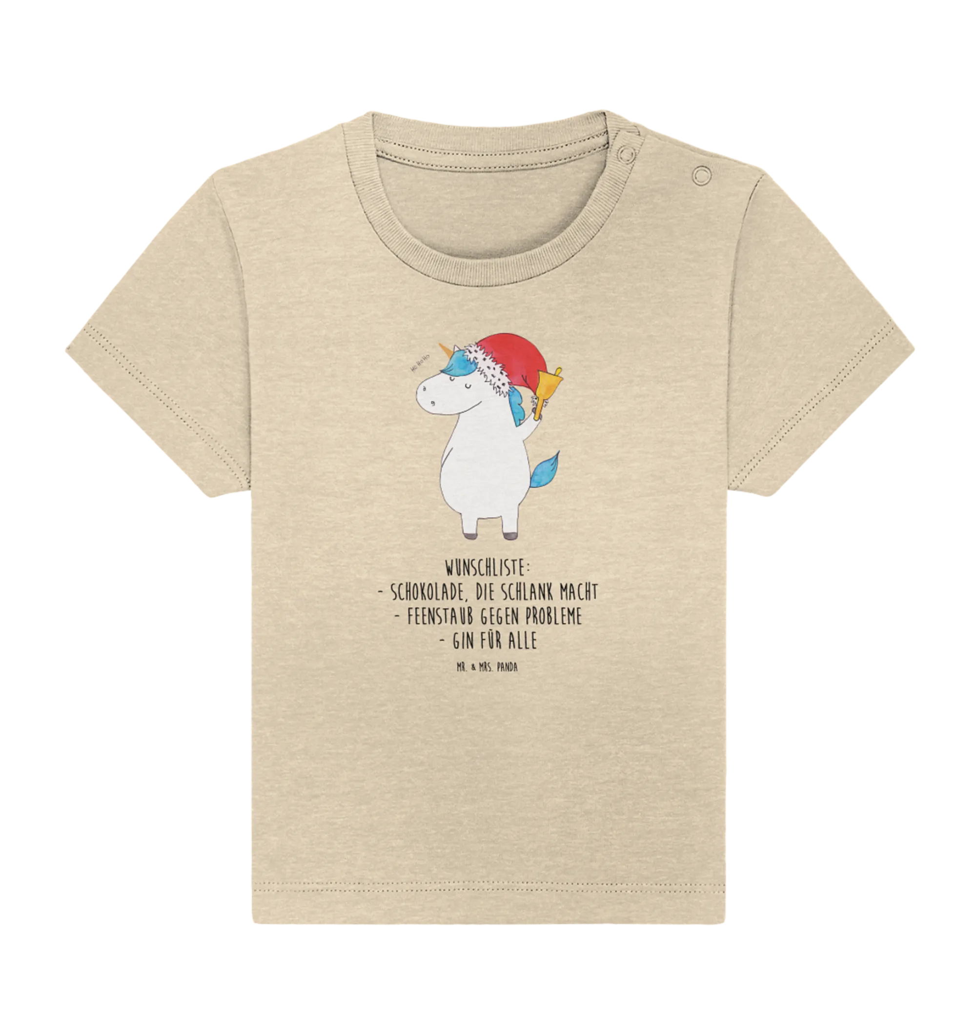 Dieses Baby T-Shirt ist nicht nur ein modisches Statement, sondern auch ein ideales Geschenk für besondere Anlässe! Egal ob zur Geburt, zum ersten Weihnachten oder als niedliches Outfit für die nächste Familienfeier – dieses Shirt wird die Herzen aller beschenkten Eltern höher schlagen lassen. Du möchtest Freunden oder Verwandten eine Freude machen? Das Einhorn Weihnachtsmann T-Shirt erfüllt die Wünsche aller kleinen Abenteurer, die die Welt der Einhörner und Magie lieben! Es beendet den Wunschzettel mit den besten Ideen: Schokolade, die schlank macht, Feenstaub gegen Probleme und Gin für alle.