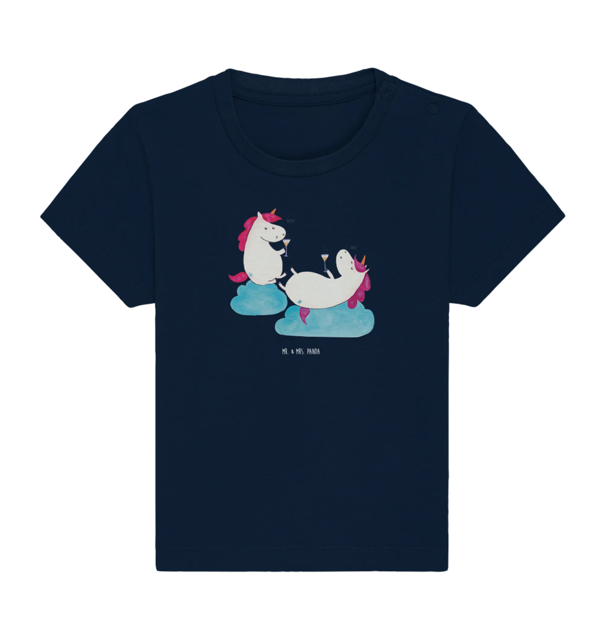 Wenn Du auf der Suche nach dem perfekten Geschenk für ein kleines Wunder bist, dann ist das Organic Baby Shirt mit dem zauberhaften Motif "Einhörner Sekt" aus der Einhorn - Kollektion von Mr. & Mrs. Panda genau das Richtige!