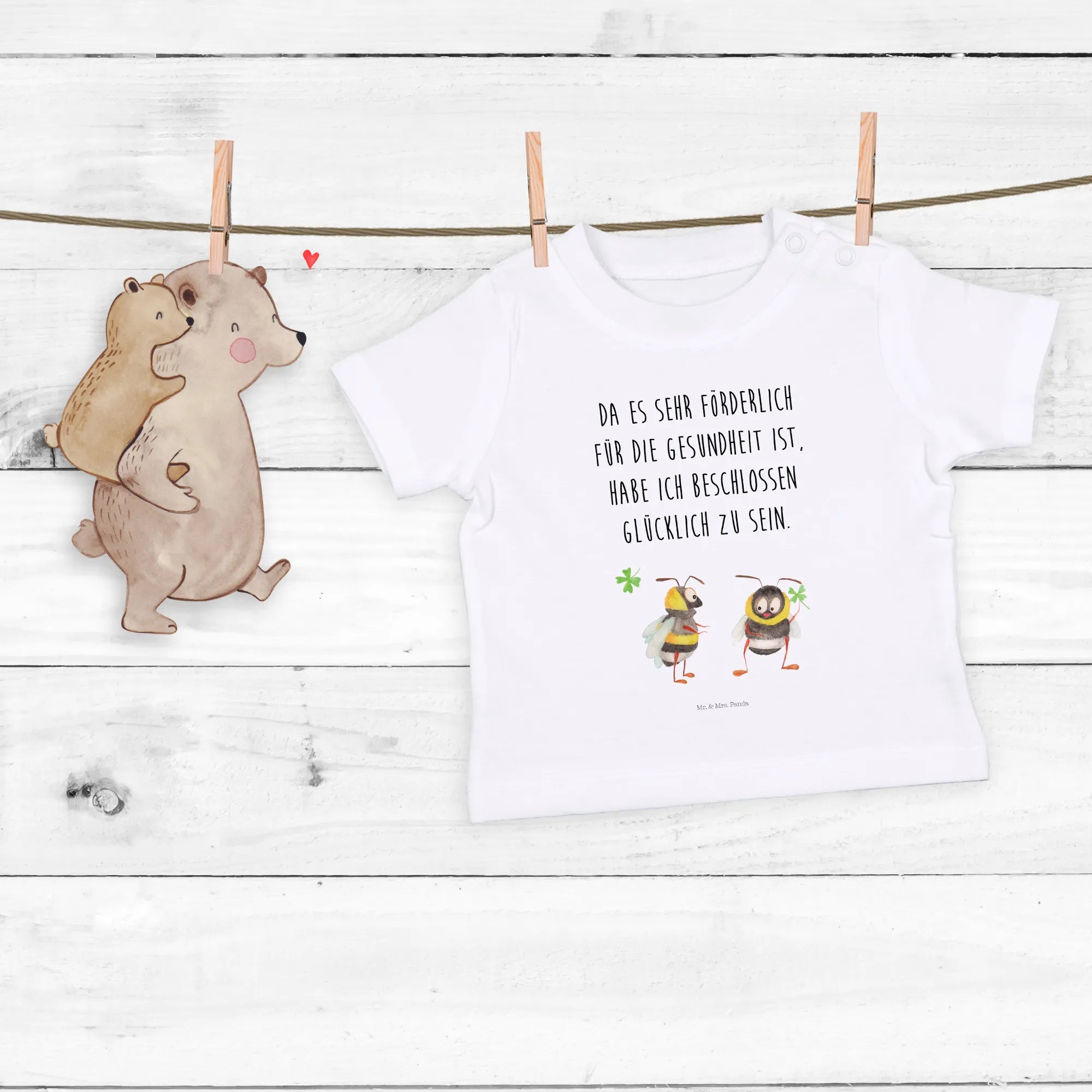 Das Organic Baby Shirt mit dem zauberhaften Motiv Hummeln mit Kleeblatt von Mr. & Mrs. Panda ist das perfekte Geschenk für jeden neugeborenen kleinen Liebling. Die süßen Hummeln, die sich gegenüberstehen und ein Kleeblatt halten, sind nicht nur niedlich, sondern vermitteln auch eine wichtige Botschaft des Glücks und der Verbundenheit. Der liebevolle Aufdruck ist nicht nur ein echtes Highlight, sondern auch ein Zeichen dafür, wie wichtig es ist, glücklich zu sein! Die positive Botschaft "Da es sehr förderlich für die Gesundheit ist, habe ich beschlossen, glücklich zu sein." ist ideal für die Zwerge und zaubert ein Lächeln auf jedes Gesicht.