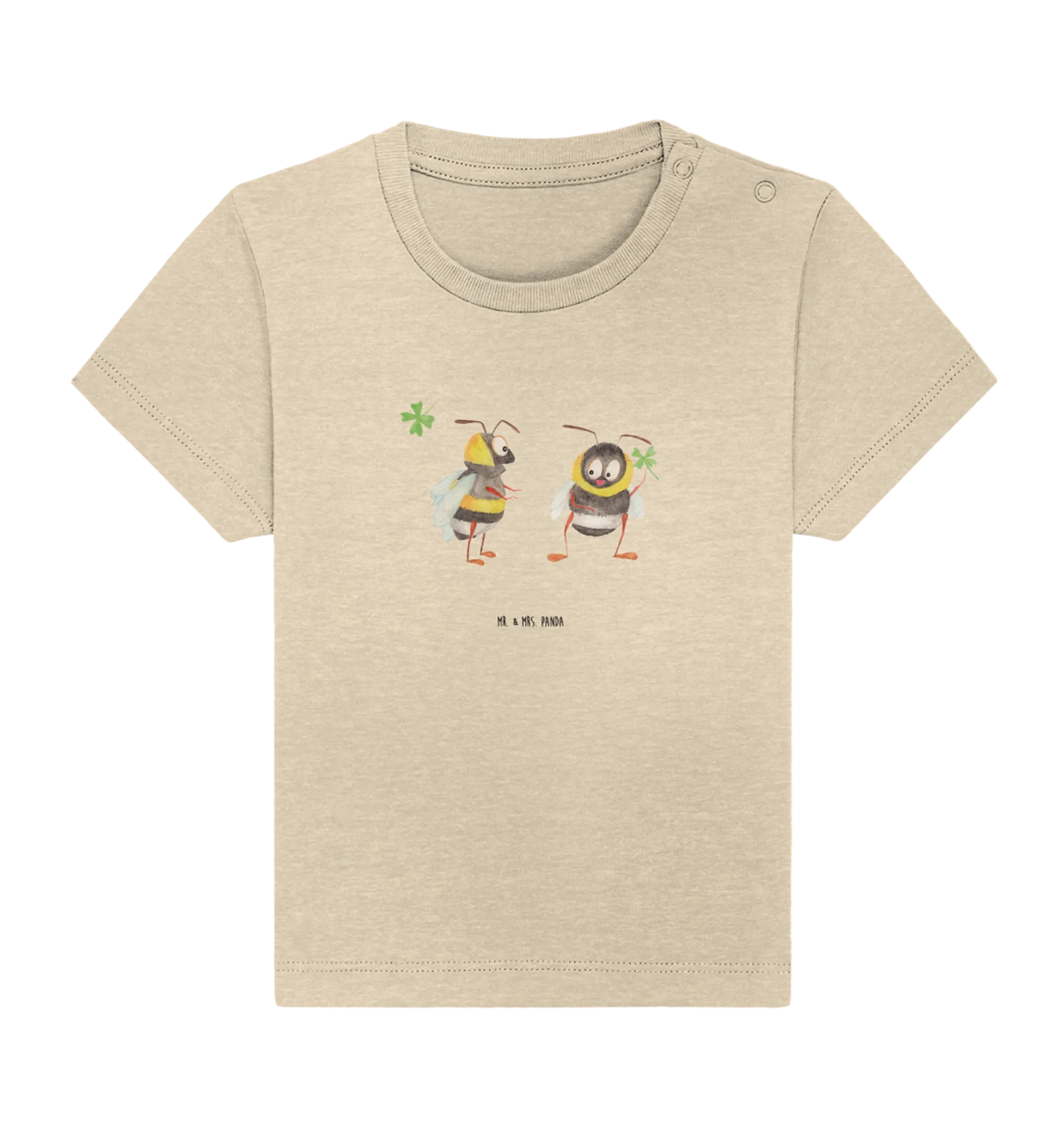 Das entzückende Motiv von zwei niedlichen Hummeln, die ein Kleeblatt in den Händen halten, symbolisiert Glück und Zusammenhalt – genau das, was du deinem kleinen Lieblingsmensch mit diesem Geschenk mitgeben möchtest. Egal ob für eine Babyparty, einen Geburtstag oder einfach nur so - dieses Baby Shirt ist eine willkommene Überraschung!