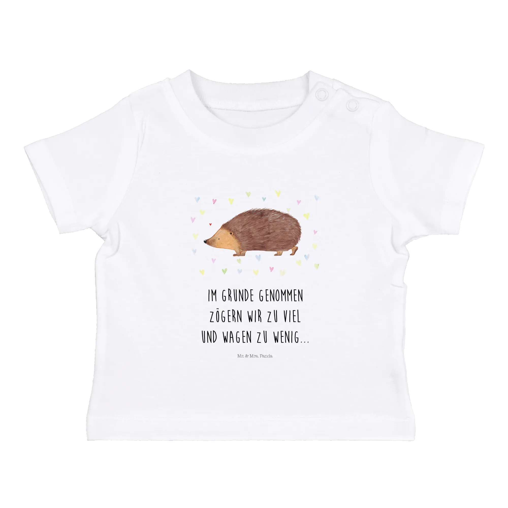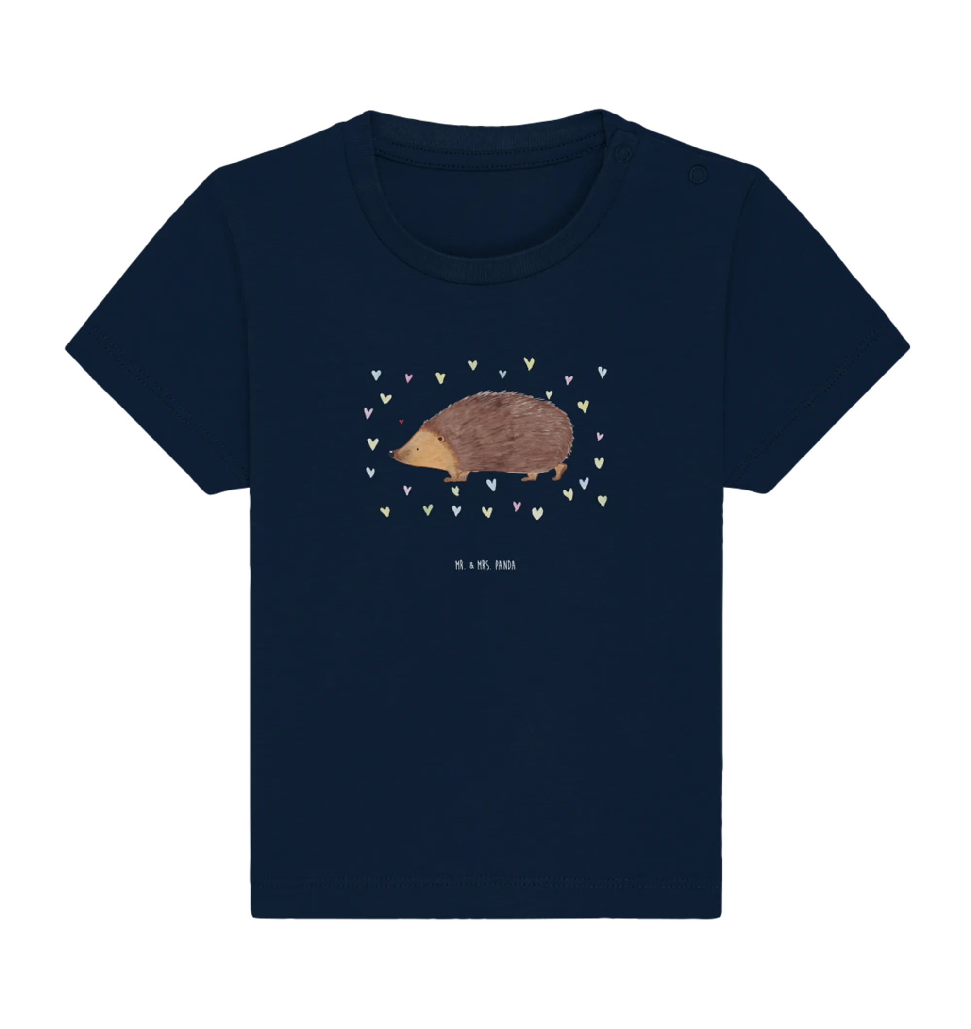 Mit diesem T-Shirt schenkst du nicht nur ein hübsches Kleidungsstück, sondern auch ein Stückchen Freude für die gesamte Familie. Die liebevollen Motive von Mr. & Mrs. Panda regen die Fantasie an und fördern eine positive und fröhliche Stimmung im Familienleben, egal ob zu Hause oder unterwegs. Überrasche die kleine Familie oder deine Freunde mit einem Geschenk, das aus der Masse heraussticht und ein Lächeln auf die Lippen zaubert! Lass den kleinen Igel und die bunten Herzen in euer Zuhause einziehen!