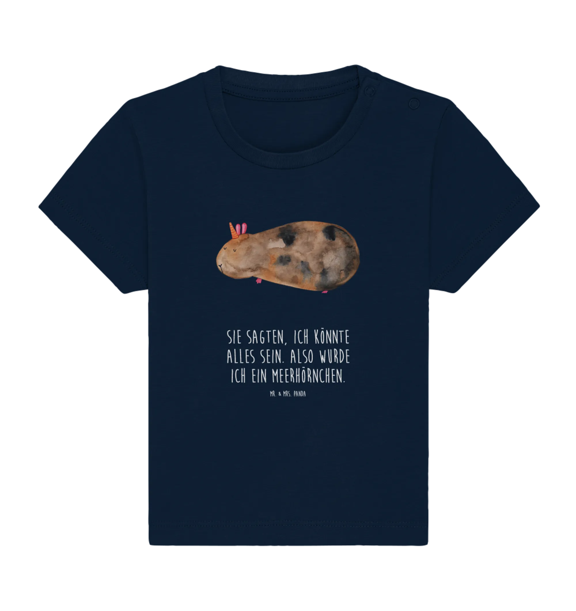 Mit dem liebevoll handgezeichneten Motiv eines Meerschweinchens mit einem Horn auf dem Kopf, gewinnt das Shirt sofort die Herzen aller eingefleischten Einhorn-Fans!