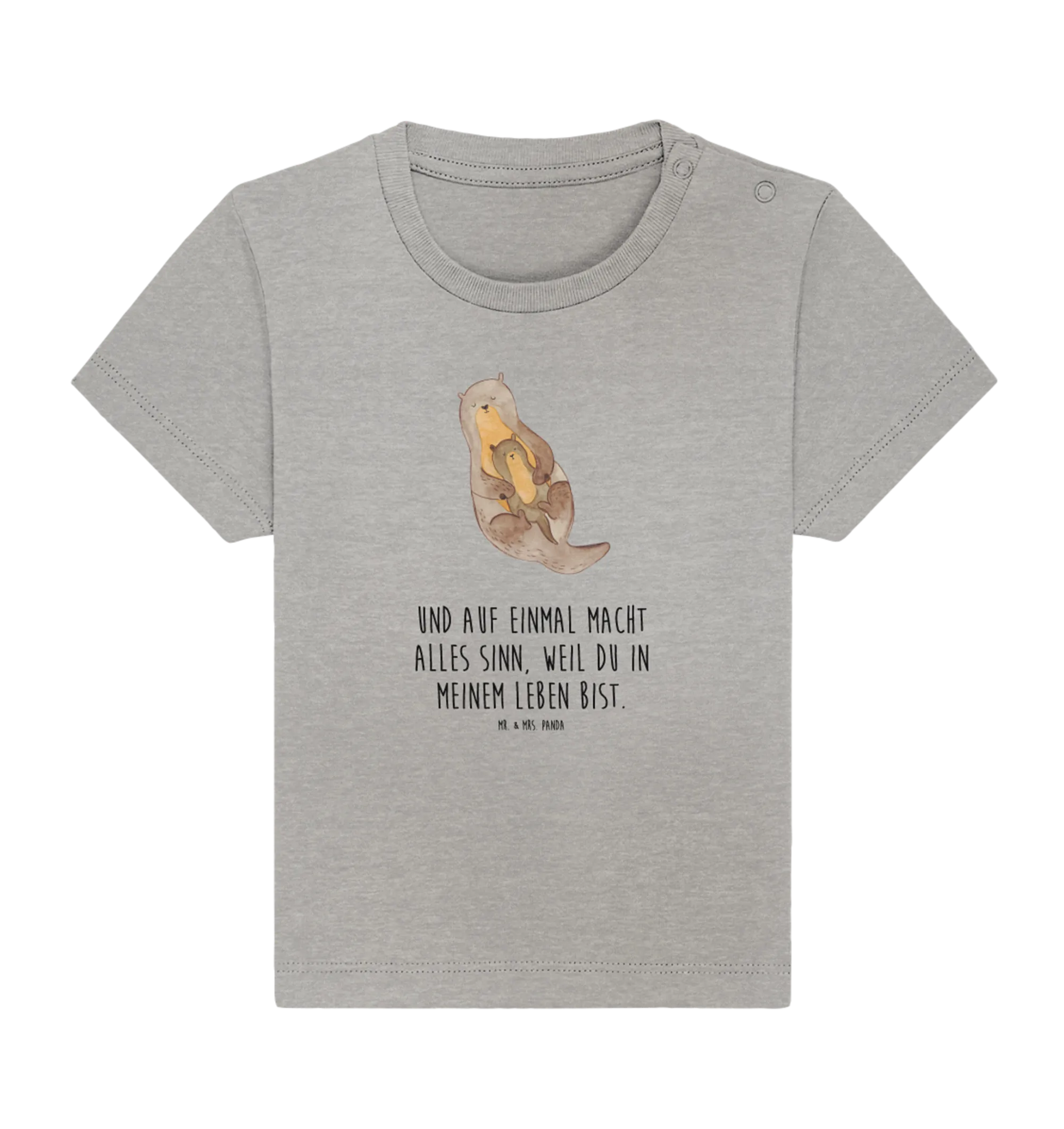 Das Organic Baby Shirt "Otter mit Kind" aus der süßen Otter - Kollektion von Mr. & Mrs. Panda ist das perfekte Geschenk für frischgebackene Eltern oder kleine Tierfreunde! 🌊🐾 Das entzückende Motiv, welches einen kleinen Otter zeigt, der liebevoll an seinem Elternteil schmiegt, fängt die herzerwärmende Bindung zwischen Eltern und Kind ein. Verbinde diese Hingabe mit dem zauberhaften Slogan: "Und auf einmal macht alles Sinn, weil du in meinem Leben bist." – eine Botschaft, die die Herzen aller anspricht.