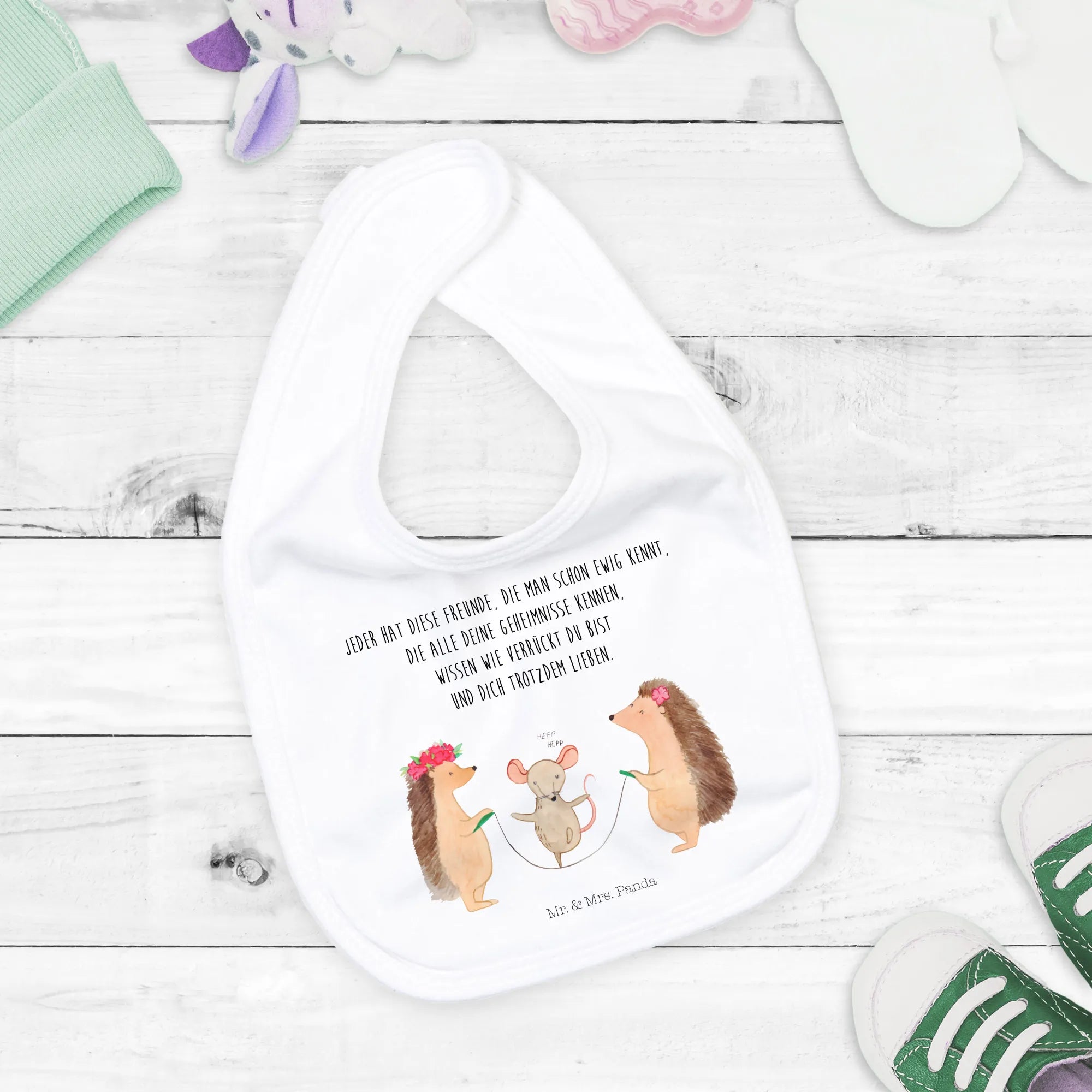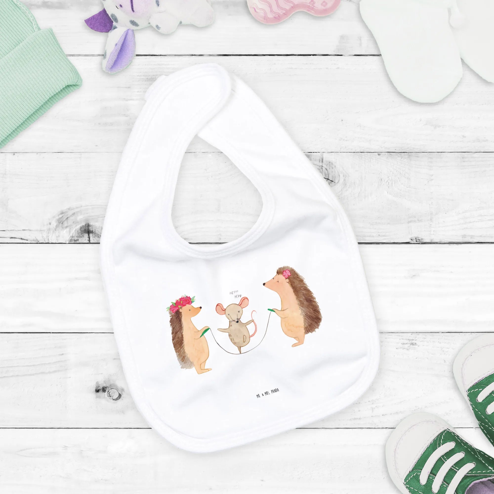 Verschenke Freude und Liebe mit dem Mr. & Mrs. Panda Organic Babylätzchen Igel Seilhüpfen – ein Geschenk, das bleibt und immer wieder Freude bereitet!