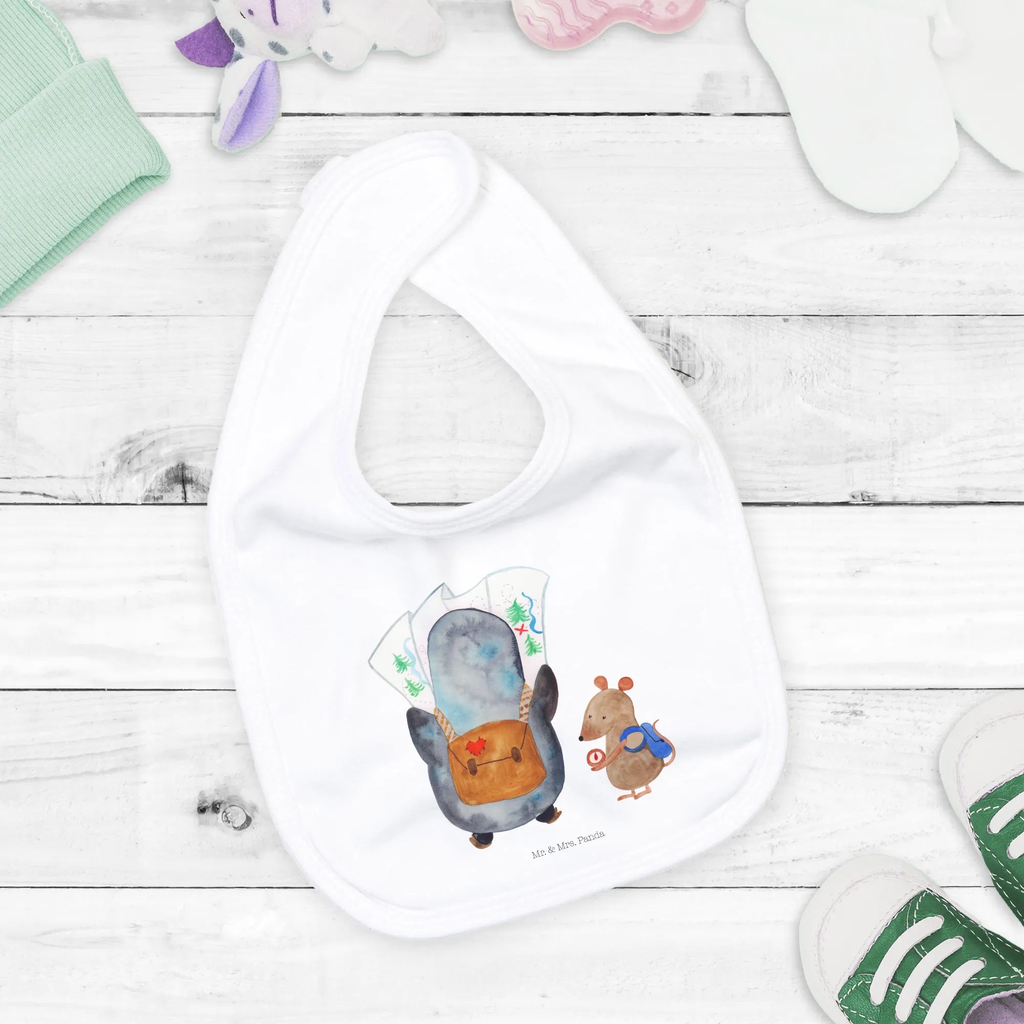 Das handgezeichnete Motiv zeigt einen neugierigen Pinguin, der auf eine Landkarte schaut, während die schlaue Maus den Kompass überprüft. Diese beiden sind bereit, viele aufregende Abenteuer zu erleben! Unser Babylätzchen ist nicht nur süß, sondern auch praktisch: Es schützt die Kleidung Deines kleinen Wunders beim Füttern oder bei den ersten Essversuchen. Es freut sich darauf, den kleinen Entdecker bei seinen Abenteuern zu begleiten, sei es beim Ausflug zum Spielplatz oder einem Roadtrip in die Natur!
