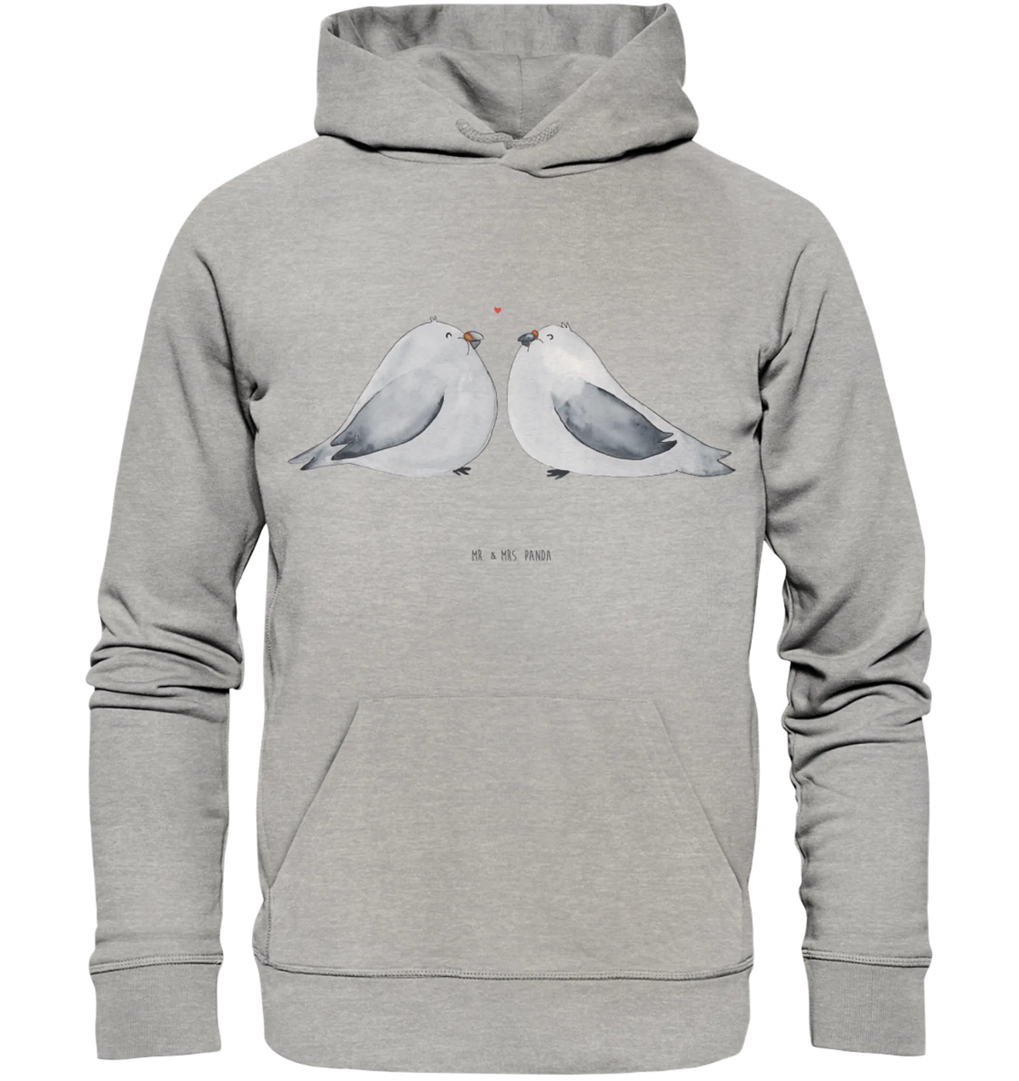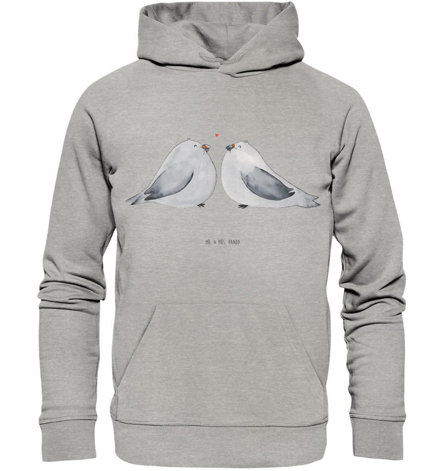 Der wunderschöne Organic Hoodie von Mr. & Mrs. Panda ist das perfekte Geschenk für Verliebte, egal ob zum Jahrestag, Hochzeitstag oder einfach als Liebesbeweis. Mit seinem zauberhaften Motiv der Turteltauben, die liebevoll nebeneinander sitzen, und dem roten Herz zwischen ihren Schnäbeln, strahlt er pure Zuneigung aus.