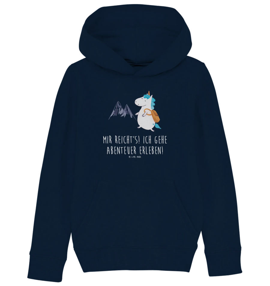 Entdecke den zauberhaften Organic Kinder Hoodie mit dem niedlichen Einhorn Bergsteiger-Motiv aus unserer Einhorn-Kollektion!