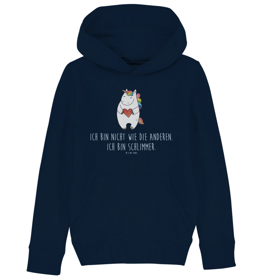 Dieser Kapuzenpullover vereint stylisches Design mit einem bequemen Tragegefühl und wird aus hochwertiger Bio-Baumwolle hergestellt. Das süße Einhorn mit dem Herzen ist nicht nur niedlich, sondern vermittelt auch Lebensfreude und die Botschaft: 'Ich bin nicht wie die Anderen. Ich bin schlimmer.'