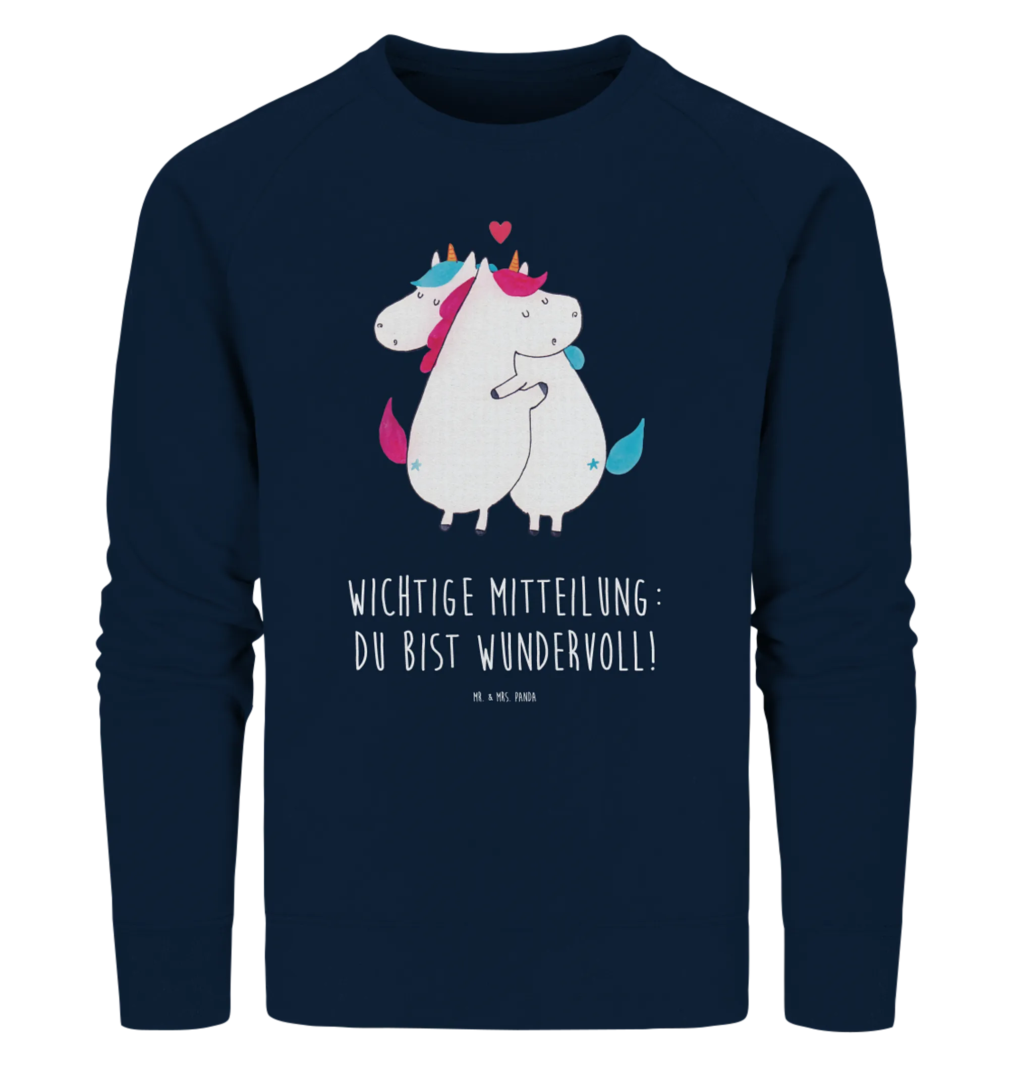 Organic Pullover Einhorn Mitteilung - Größe XXL - mit Spruch - French Navy