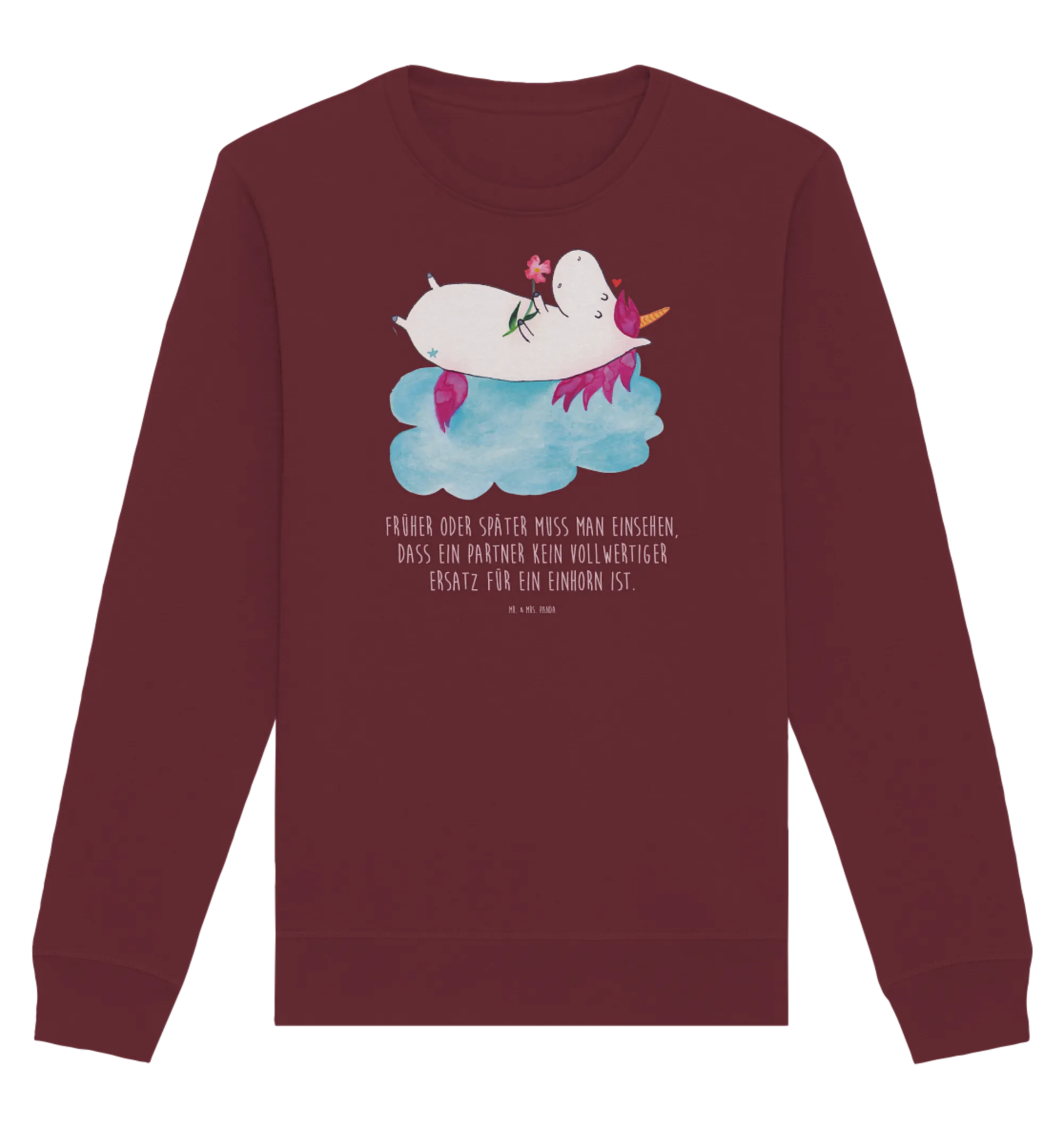 Stell dir vor, ein zauberhaftes Einhorn schwebt auf einer Wolke, das Herz voller Liebe und zauberhaften Träumen. Dieses Motiv strahlt Freude und Zuneigung aus und verändert die Welt um uns herum. Das Einhorn ist nicht nur ein Symbol für Fantasie, sondern auch für innige Beziehungen. Kreiert von Mr. & Mrs. Panda, trägt es den Spruch: 'Früher oder später muss man einsehen, dass ein Partner kein vollwertiger Ersatz für ein Einhorn ist.' Die Botschaft dahinter ist klar: Die wahre Magie der Liebe ist selten und kostbar. Wenn wir dem Einhorn begegnen, sehen wir die Unbeschwertheit und den Mut in einem Herzen, das sich für die Liebe öffnet. So lädt uns dieses Motiv dazu ein, unsere eigenen Träume und Beziehungen wertzuschätzen.